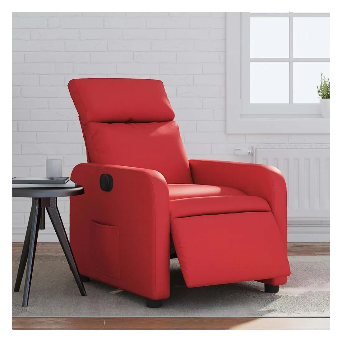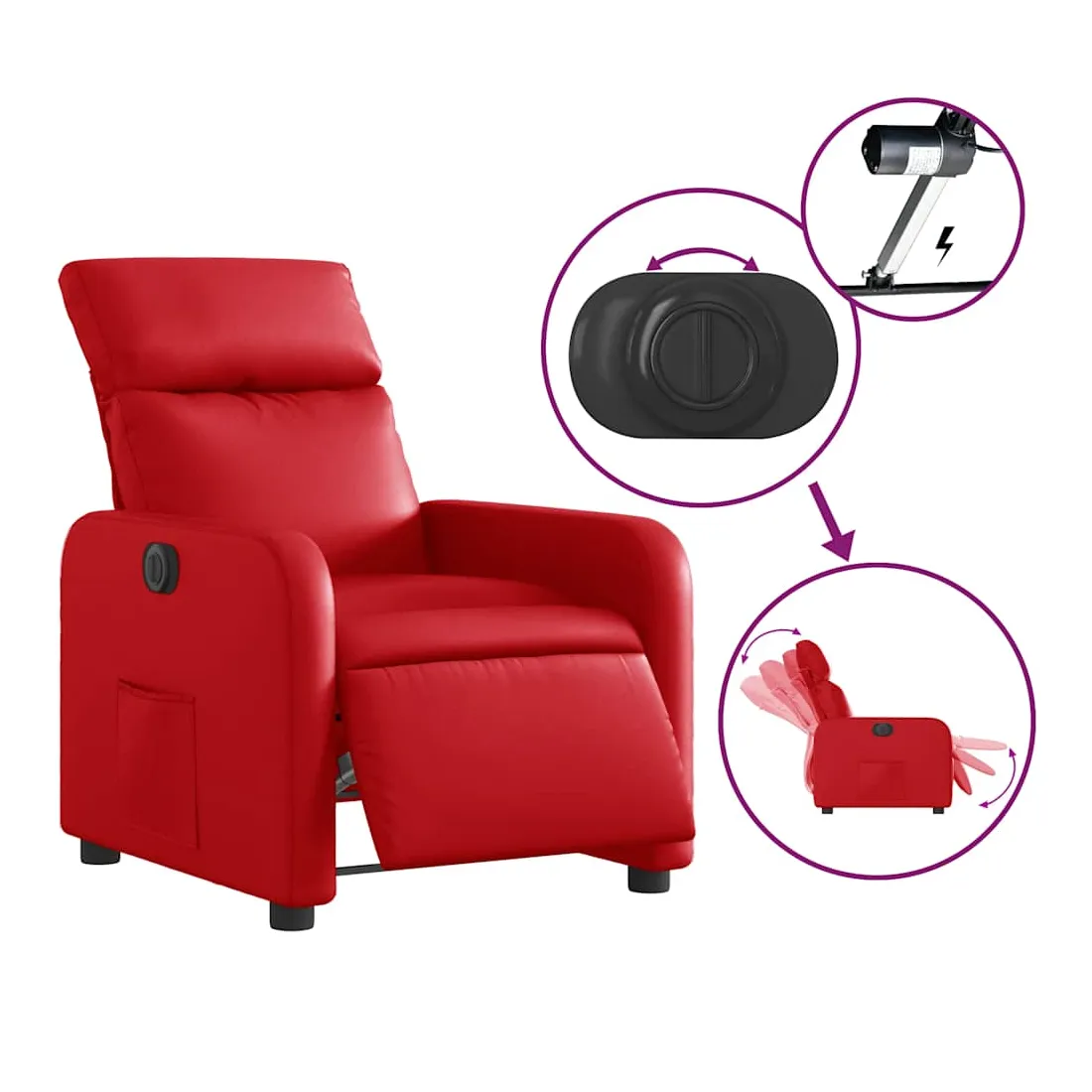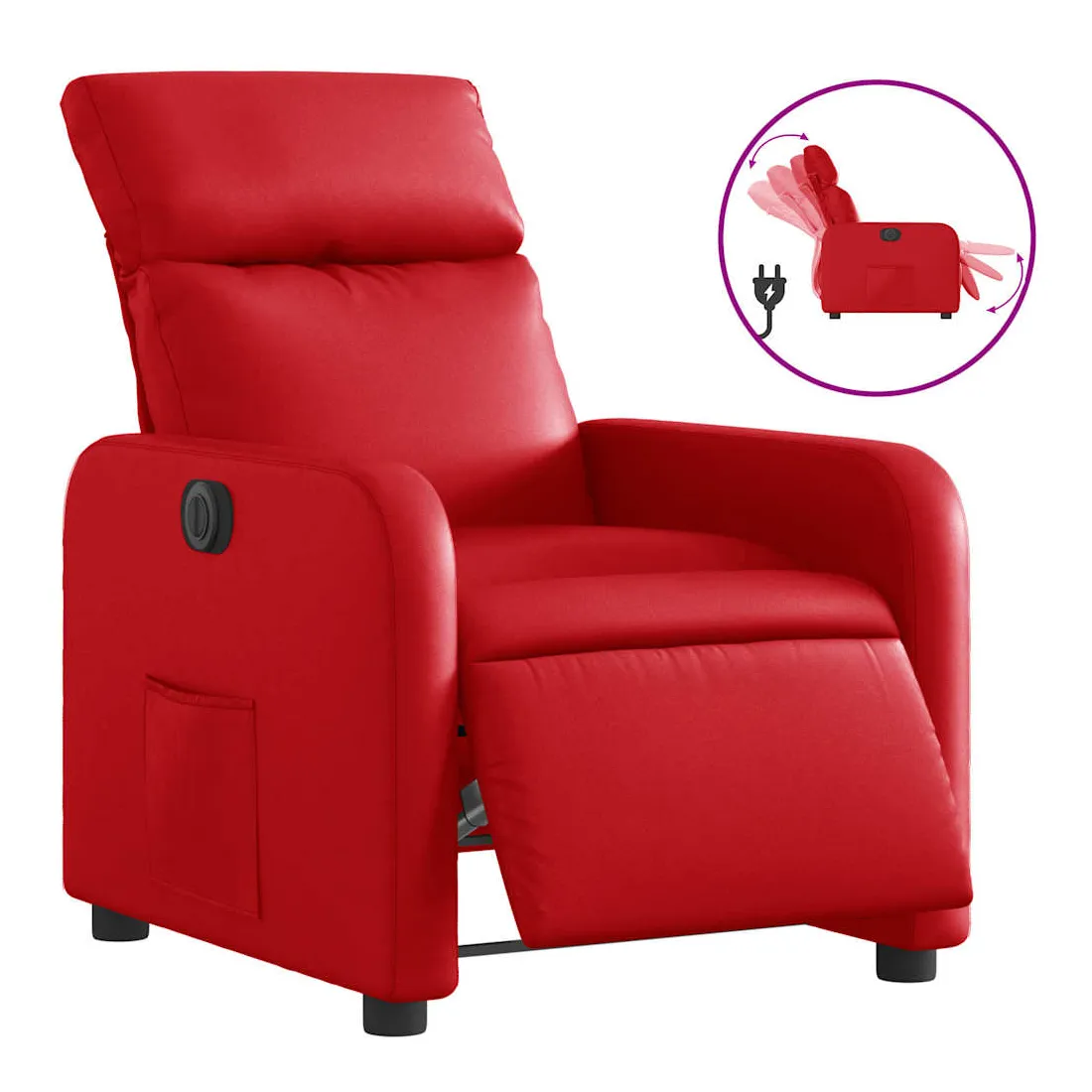 Asseyez-vous et détendez-vous dans ce fauteuil inclinable électrique très confortable ! Fonction d'inclinaison électrique : ce fauteuil inclinable est équipé d'un moteur électrique qui permet de régler automatiquement le repose-pied et le dossier dans n'importe quelle position, selon votre confort, en appuyant simplement sur le bouton situé sur le côté du fauteuil. Cette fonction permet une inclinaison maximale de 135 degrés. En outre, le dossier peut revenir automatiquement à sa position d'origine par une simple pression sur le bouton.Expérience de siège confortable : le siège, le dossier et les larges accoudoirs rembourrés épais recouverts de similicuir procurent une sensation confortable, vous faisant vous sentir enlacé lorsque vous êtes assis. Le similicuir est un matériau très résistant. Il est résistant aux taches, ce qui le rend facile à nettoyer avec un chiffon humide. La surface lisse donne également un aspect luxueux et la beauté du cuir véritable.Poche latérale pratique : ce fauteuil est doté d'une poche latérale pour vous permettre de garder vos objets essentiels à portée de main.Cadre solide et stable : le cadre en bois et en métal offre une structure solide et une grande stabilité. Ce fauteuil inclinable est confortable et durable.
