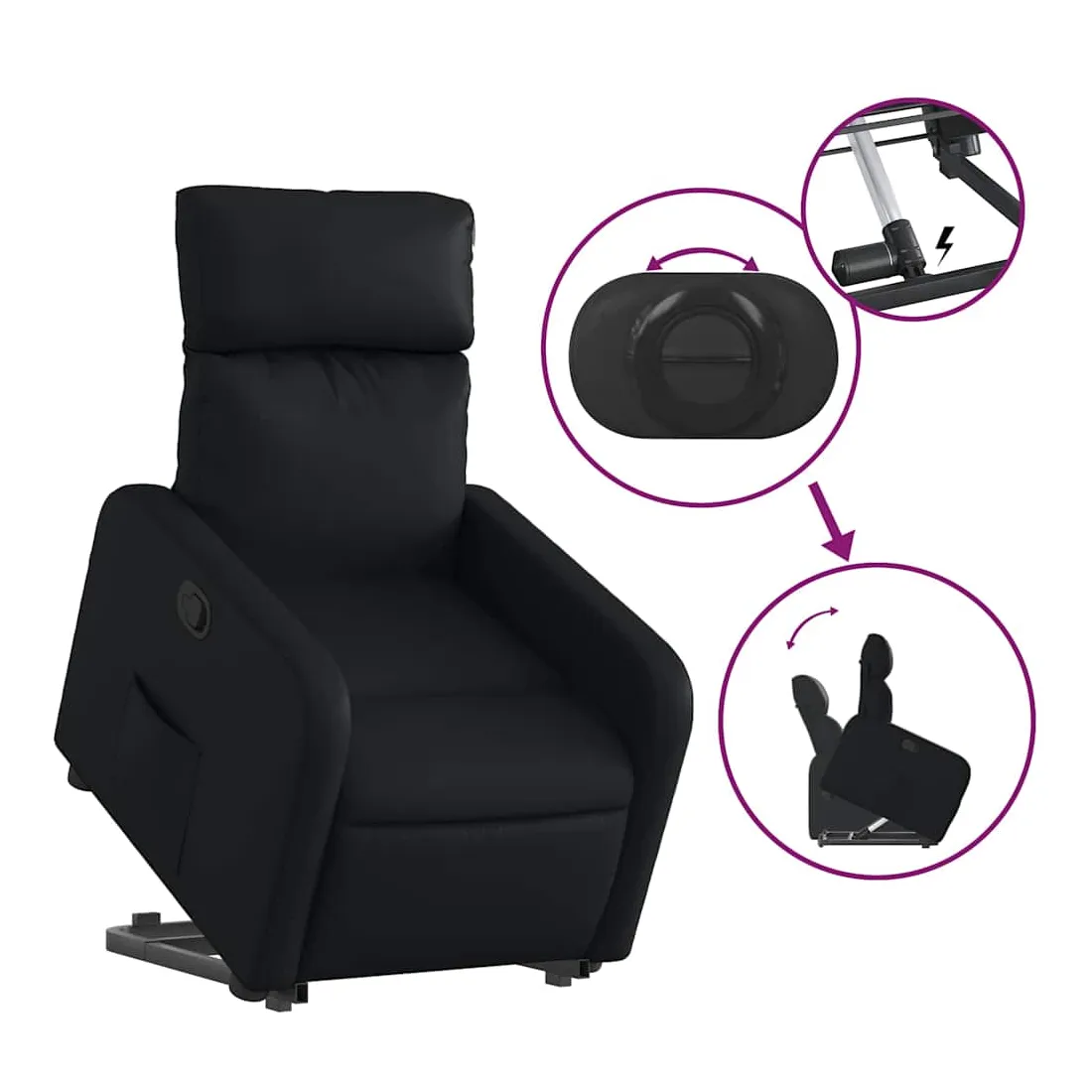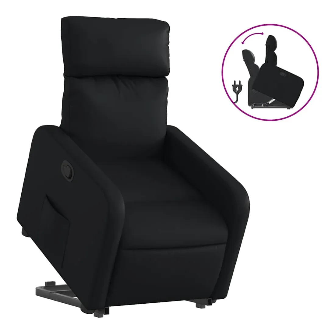 Asseyez-vous et détendez-vous dans ce fauteuil inclinable très confortable ! Fonction de levage électrique : ce fauteuil inclinable pour personnes âgées est équipé d'un moteur électrique pour la fonction de levage. Grâce à la fonction qui pousse toute la chaise vers le haut, vous pouvez facilement vous tenir debout sans stresser votre dos et vos genoux en appuyant simplement sur le bouton.Fonction d'inclinaison manuelle : ce fauteuil inclinable est doté d'une poignée du côté droit. Vous pouvez régler manuellement le repose-pieds et le dossier dans n'importe quelle position selon votre confort en tirant simplement sur la poignée. Cette fonction permet une inclinaison maximale de 135 degrés. De plus, le dossier peut revenir rapidement à sa position d'origine en tirant simplement sur la poignée.Expérience de siège confortable : le siège, le dossier et les larges accoudoirs rembourrés épais recouverts de similicuir procurent une sensation confortable, vous faisant vous sentir enlacé lorsque vous êtes assis. Le similicuir est un matériau très résistant. Il est résistant aux taches, ce qui le rend facile à nettoyer avec un chiffon humide. La surface lisse donne également un aspect luxueux et la beauté du cuir véritable.Poche latérale pratique : ce fauteuil est doté d'une poche latérale pour vous permettre de garder vos objets essentiels à portée de main.Cadre solide et stable : le cadre en bois et en métal offre une structure solide et une grande stabilité. Ce fauteuil inclinable est confortable et durable.