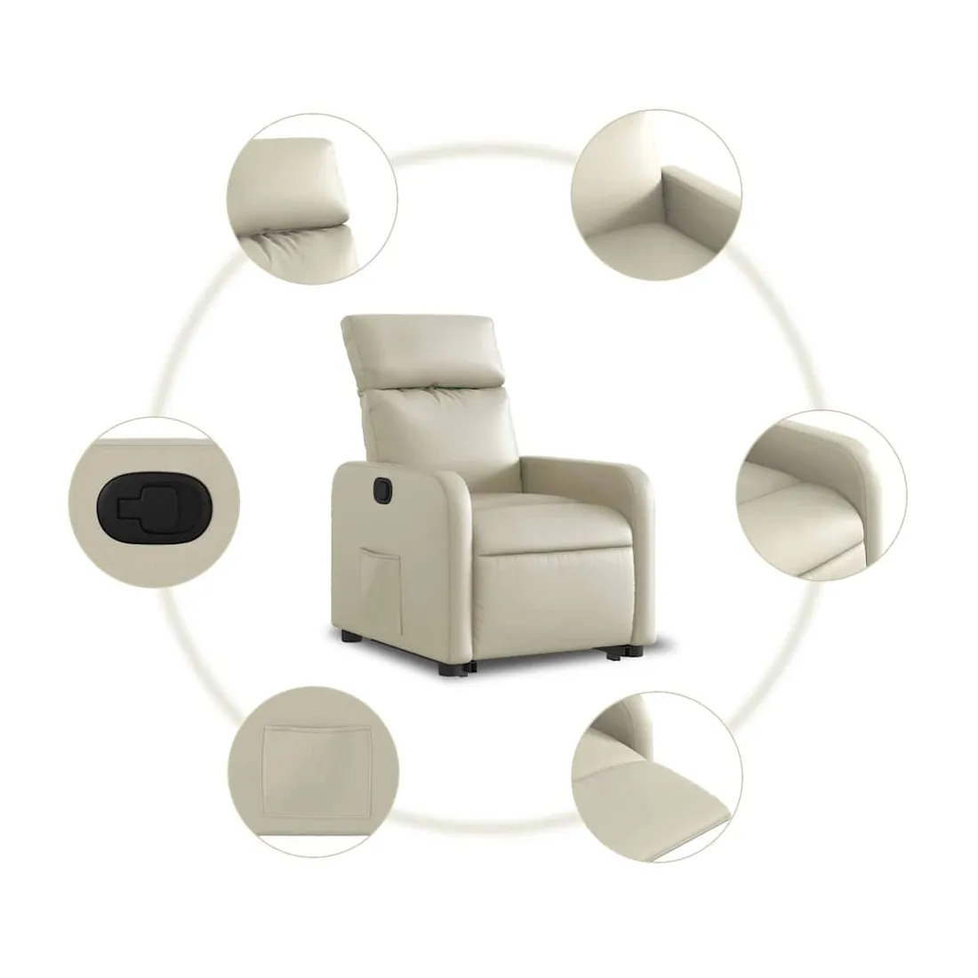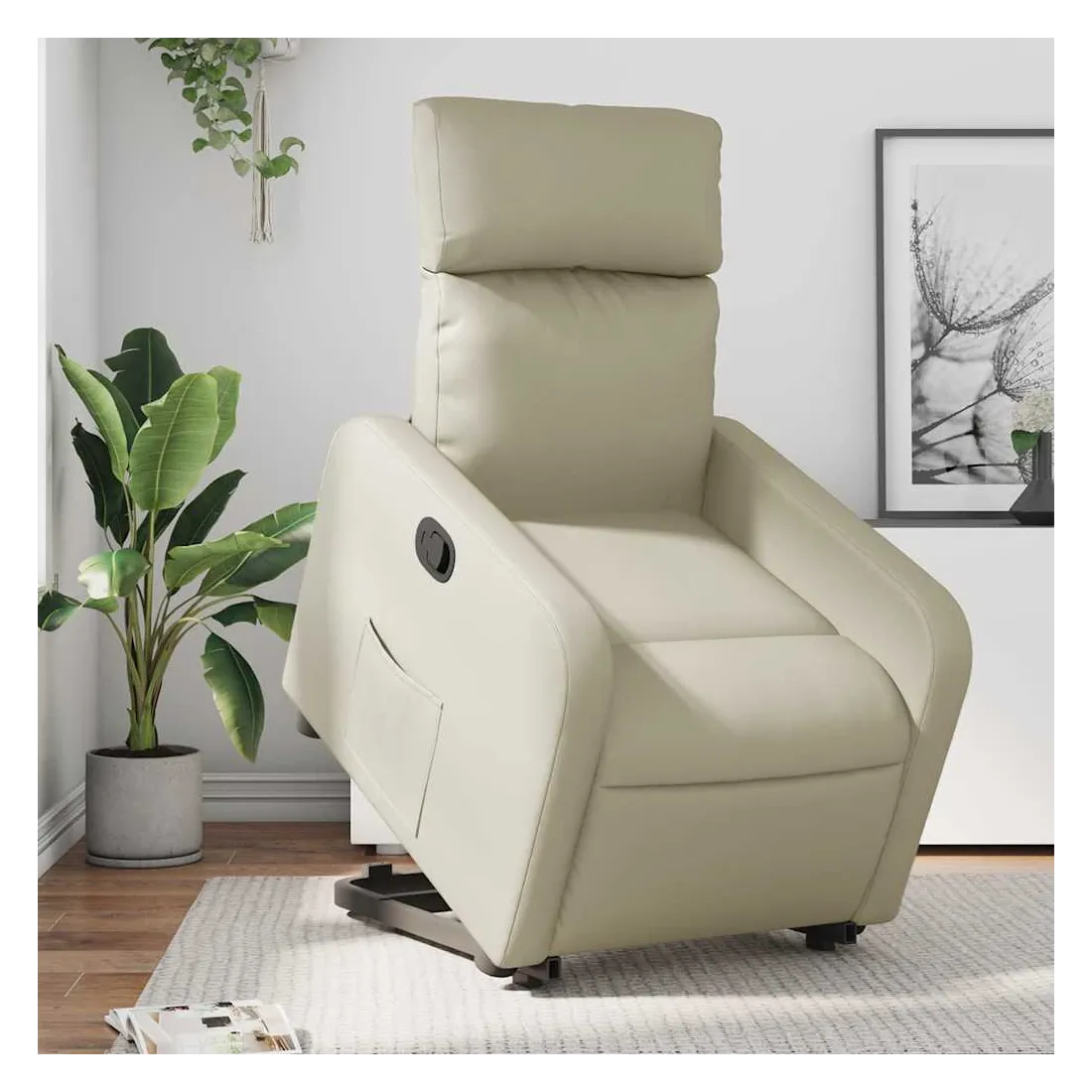 Asseyez-vous et détendez-vous dans ce fauteuil inclinable très confortable ! Fonction de levage électrique : ce fauteuil inclinable pour personnes âgées est équipé d'un moteur électrique pour la fonction de levage. Grâce à la fonction qui pousse toute la chaise vers le haut, vous pouvez facilement vous tenir debout sans stresser votre dos et vos genoux en appuyant simplement sur le bouton.Fonction d'inclinaison manuelle : ce fauteuil inclinable est doté d'une poignée du côté droit. Vous pouvez régler manuellement le repose-pieds et le dossier dans n'importe quelle position selon votre confort en tirant simplement sur la poignée. Cette fonction permet une inclinaison maximale de 135 degrés. De plus, le dossier peut revenir rapidement à sa position d'origine en tirant simplement sur la poignée.Expérience de siège confortable : le siège, le dossier et les larges accoudoirs rembourrés épais recouverts de similicuir procurent une sensation confortable, vous faisant vous sentir enlacé lorsque vous êtes assis. Le similicuir est un matériau très résistant. Il est résistant aux taches, ce qui le rend facile à nettoyer avec un chiffon humide. La surface lisse donne également un aspect luxueux et la beauté du cuir véritable.Poche latérale pratique : ce fauteuil est doté d'une poche latérale pour vous permettre de garder vos objets essentiels à portée de main.Cadre solide et stable : le cadre en bois et en métal offre une structure solide et une grande stabilité. Ce fauteuil inclinable est confortable et durable.