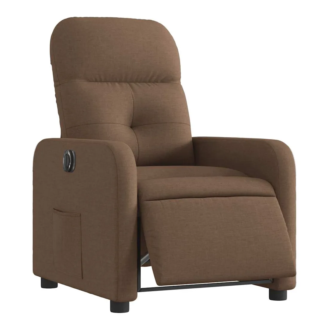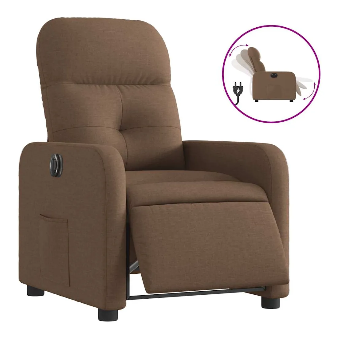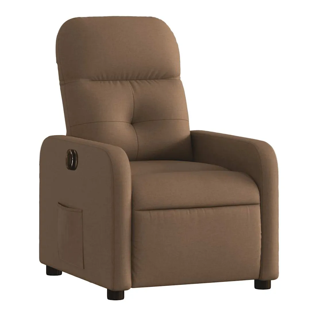 Asseyez-vous et détendez-vous dans ce fauteuil inclinable électrique très confortable ! Fonction d'inclinaison électrique : ce fauteuil inclinable est équipé d'un moteur électrique qui permet de régler automatiquement le repose-pied et le dossier dans n'importe quelle position, selon votre confort, en appuyant simplement sur le bouton situé sur le côté du fauteuil. Cette fonction permet une inclinaison maximale de 135 degrés. En outre, le dossier peut revenir automatiquement à sa position d'origine par une simple pression sur le bouton.Expérience d'assise confortable : le siège, le dossier et les larges accoudoirs bien rembourrés recouverts de tissu procurent une sensation confortable et chaleureuse, vous permettant de vous sentir enveloppé lorsque vous êtes assis. Le tissu présente un aspect simple et épuré et est respirant et durable.Poche latérale pratique : ce fauteuil est doté d'une poche latérale pour vous permettre de garder vos objets essentiels à portée de main.Cadre solide et stable : le cadre en bois et en métal offre une structure solide et une grande stabilité. Ce fauteuil inclinable est confortable et durable.