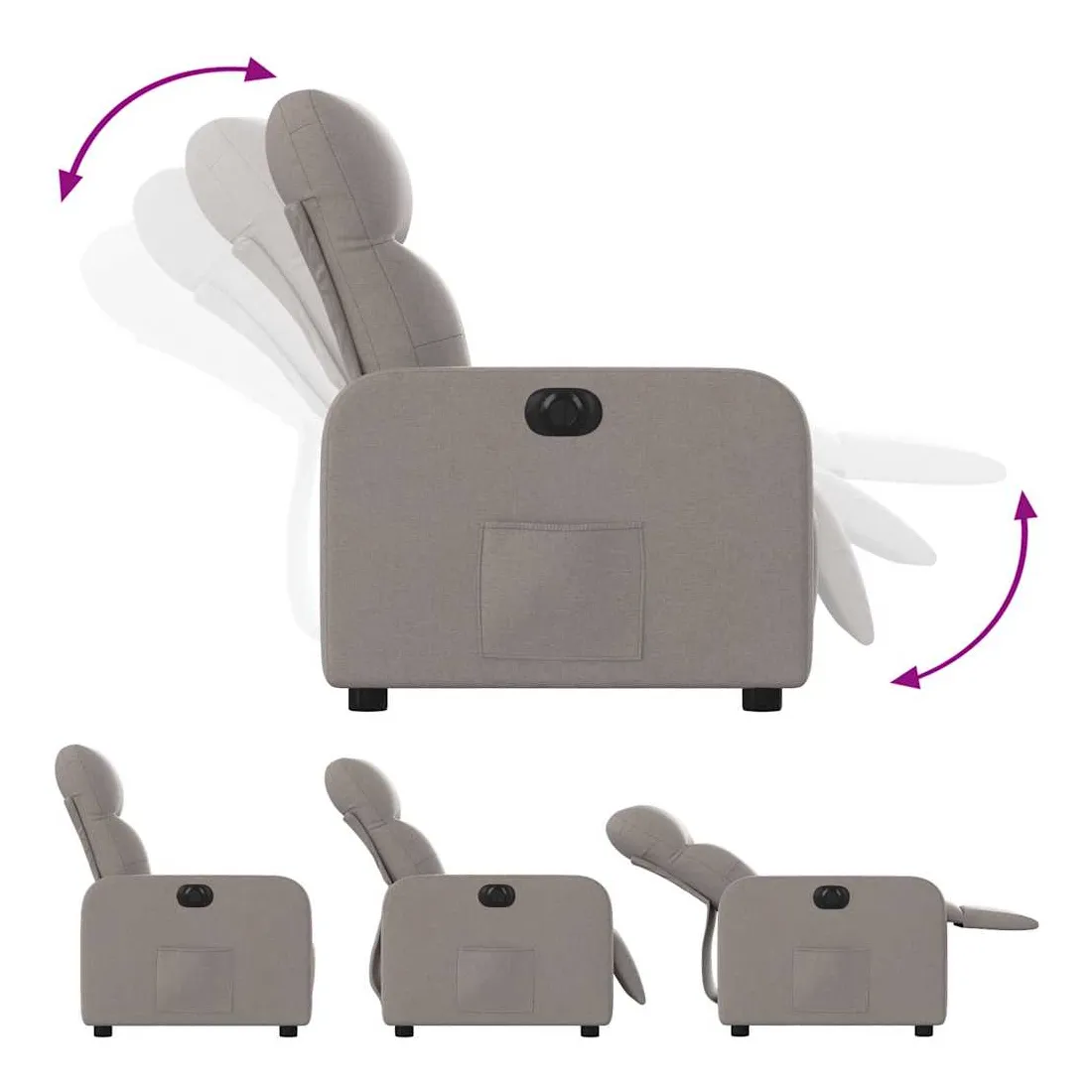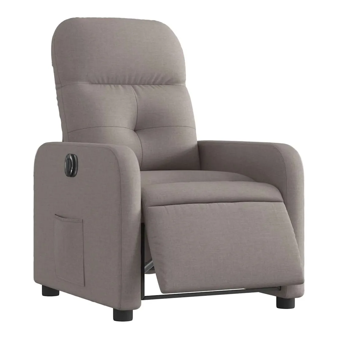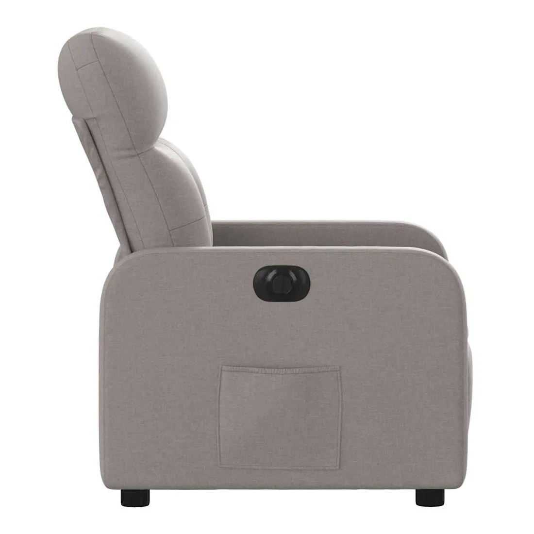 Asseyez-vous et détendez-vous dans ce fauteuil inclinable électrique très confortable ! Fonction d'inclinaison électrique : ce fauteuil inclinable est équipé d'un moteur électrique qui permet de régler automatiquement le repose-pied et le dossier dans n'importe quelle position, selon votre confort, en appuyant simplement sur le bouton situé sur le côté du fauteuil. Cette fonction permet une inclinaison maximale de 135 degrés. En outre, le dossier peut revenir automatiquement à sa position d'origine par une simple pression sur le bouton.Expérience d'assise confortable : le siège, le dossier et les larges accoudoirs bien rembourrés recouverts de tissu procurent une sensation confortable et chaleureuse, vous permettant de vous sentir enveloppé lorsque vous êtes assis. Le tissu présente un aspect simple et épuré et est respirant et durable.Poche latérale pratique : ce fauteuil est doté d'une poche latérale pour vous permettre de garder vos objets essentiels à portée de main.Cadre solide et stable : le cadre en bois et en métal offre une structure solide et une grande stabilité. Ce fauteuil inclinable est confortable et durable.