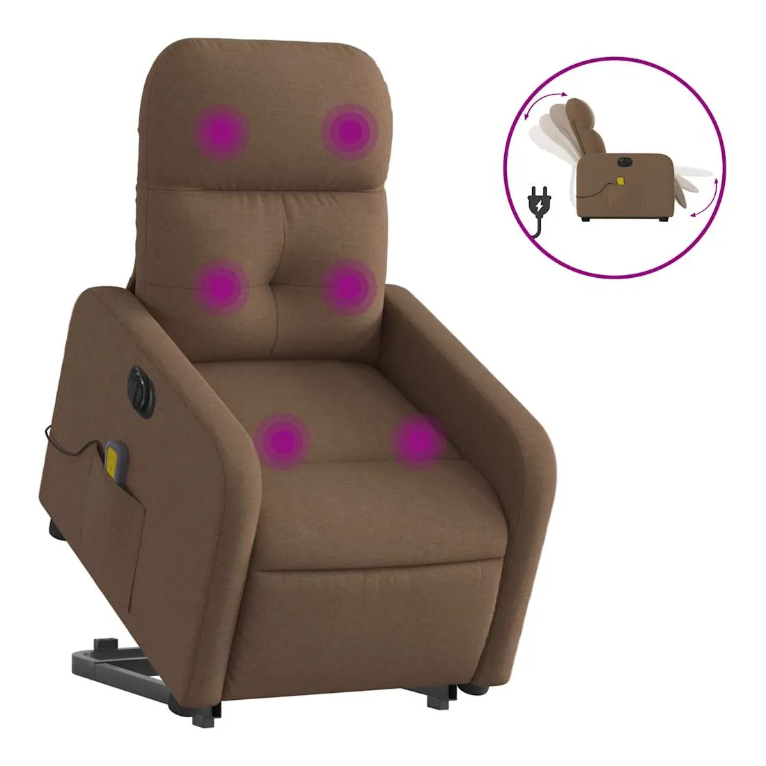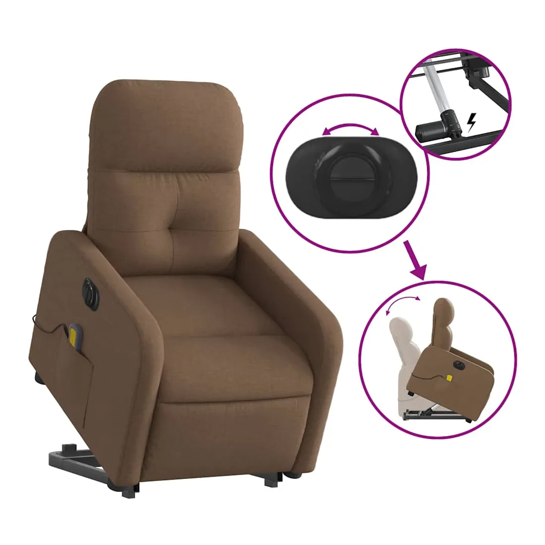 Asseyez-vous et détendez-vous dans ce fauteuil inclinable de massage électrique très confortable ! Fonction de levage électrique : ce fauteuil inclinable pour personnes âgées est équipé d'un moteur électrique pour la fonction de levage. Grâce à la fonction qui pousse toute la chaise vers le haut, vous pouvez facilement vous tenir debout sans stresser votre dos et vos genoux en appuyant simplement sur le bouton.Fonction d'inclinaison électrique : ce fauteuil inclinable est également équipé d'un moteur électrique qui permet de régler automatiquement le repose-pied et le dossier dans n'importe quelle position, selon votre confort, en appuyant simplement sur le bouton situé sur le côté du fauteuil. Cette fonction permet une inclinaison maximale de 135 degrés. En outre, le dossier peut revenir automatiquement à sa position d'origine par une simple pression sur le bouton.Fonction de vibration : les 6 points de massage vous permettent de faire l'expérience d'un massage mieux ciblé. De plus, la télécommande incluse vous permet de choisir différents programmes de massage. La fonction de massage est alimentée par le connecteur USB qui nécessite une source d'alimentation USB certifiée de 5 V (non fournie).Expérience d'assise confortable : le siège, le dossier et les larges accoudoirs bien rembourrés recouverts de tissu procurent une sensation confortable et chaleureuse, vous permettant de vous sentir enveloppé lorsque vous êtes assis. Le tissu présente un aspect simple et épuré et est respirant et durable.Poche latérale pratique : ce fauteuil est doté d'une poche latérale pour ranger votre télécommande ou garder vos objets essentiels à portée de main.