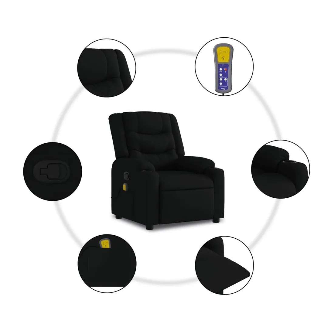 Asseyez-vous et détendez-vous dans ce fauteuil inclinable de massage très confortable ! Fonction d'inclinaison manuelle : ce fauteuil inclinable est doté d'une poignée du côté droit. Vous pouvez régler manuellement le repose-pieds et le dossier dans n'importe quelle position selon votre confort en tirant simplement sur la poignée. Cette fonction permet une inclinaison maximale de 135 degrés. De plus, le dossier peut revenir rapidement à sa position d'origine en tirant simplement sur la poignée.Fonction de vibration : les 6 points de massage vous permettent de faire l'expérience d'un massage mieux ciblé. De plus, la télécommande incluse vous permet de choisir différents programmes de massage. La fonction de massage est alimentée par le connecteur USB, mais la source d'alimentation USB 5V certifiée n'est pas incluse.Expérience d'assise confortable : le siège, le dossier et les larges accoudoirs bien rembourrés recouverts de tissu procurent une sensation confortable et chaleureuse, vous permettant de vous sentir enveloppé lorsque vous êtes assis. Le tissu présente un aspect simple et épuré et est respirant et durable.Porte-gobelets et poche latérale pratiques : ce fauteuil dispose de deux porte-gobelets pratiques pour vos boissons et d'une poche latérale pour votre télécommande ou pour garder vos objets essentiels à portée de main.Cadre solide et stable : le cadre en bois et en métal offre une structure solide et une grande stabilité. Ce fauteuil inclinable est confortable et durable.