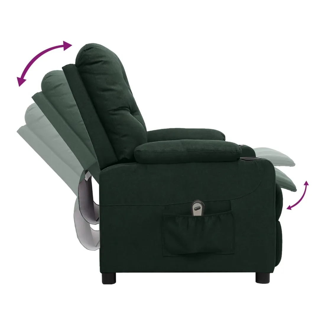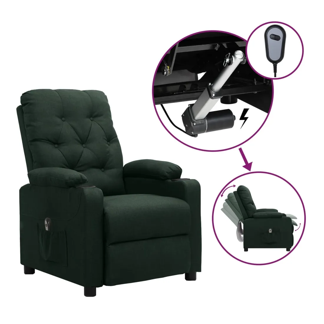 Asseyez-vous et détendez-vous dans ce fauteuil inclinable électrique très confortable ! Fonction d'inclinaison électrique : le fauteuil inclinable est équipé d'un moteur électrique pour la fonction d'inclinaison. Il offre 3 positions d'inclinaison et vous pouvez facilement régler le dossier et le repose-pied à l'aide de la commande manuelle à 2 boutons incluse, en fonction de votre confort.Expérience d'assise confortable : le siège, le dossier et les larges accoudoirs rembourrés épais recouverts de tissu procurent une sensation confortable et chaleureuse, vous permettant de vous sentir enveloppé lorsque vous êtes assis. Le tissu présente un aspect simple et épuré, et est respirant et durable.Cadre solide et stable : le cadre en bois et en métal offre une structure solide et une grande stabilité. Ce fauteuil inclinable est confortable et durable.