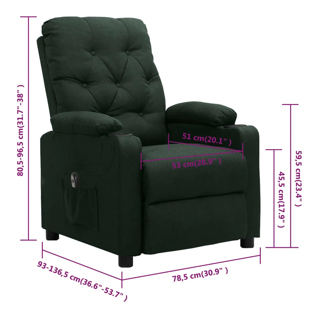 - Hauteur des accoudoirs à partir du sol : 59,5 cm