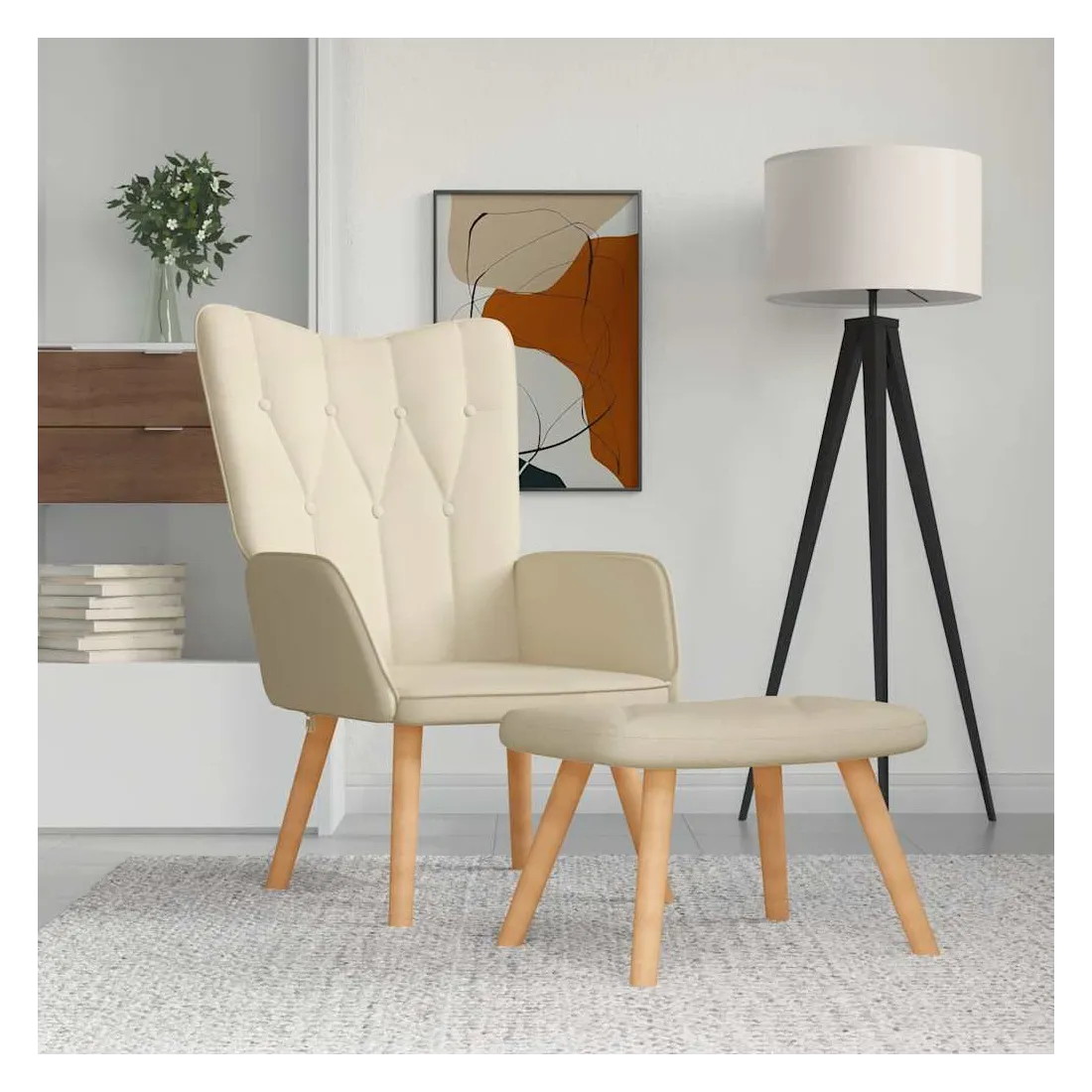 Cette chaise de relaxation avec tabouret au design chic et élégant apportera une touche de modernité à votre déco. Doté de 7 boutons et lignes, ce fauteuil est esthétique. Grâce à sa mousse rembourrée recouverte d'un tissu doux au toucher, vous pourrez profiter d'un confort optimal pendant votre temps d'assise. De plus, soutenue par un cadre en acier et des pieds en bois, la chaise à manger avec tabouret est stable et durable.