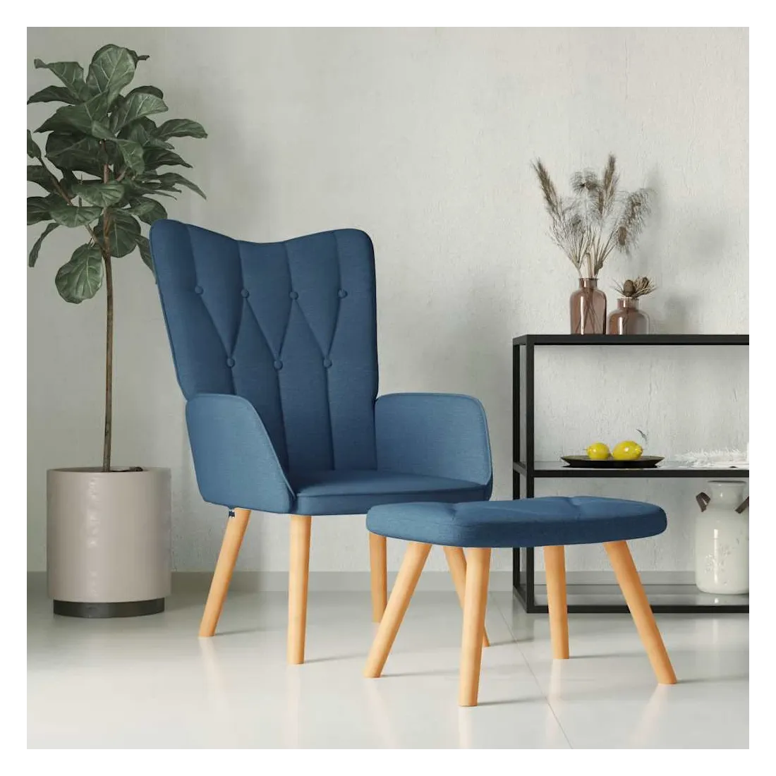 Cette chaise de relaxation avec tabouret au design chic et élégant apportera une touche de modernité à votre déco. Doté de 7 boutons et lignes, ce fauteuil est esthétique. Grâce à sa mousse rembourrée recouverte d'un tissu doux au toucher, vous pourrez profiter d'un confort optimal pendant votre temps d'assise. De plus, soutenue par un cadre en acier et des pieds en bois, la chaise à manger avec tabouret est stable et durable.