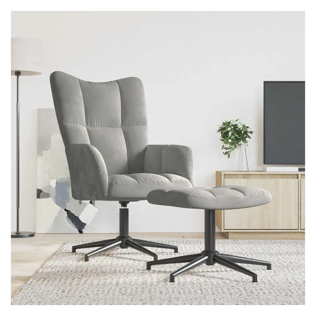 Cette chaise de relaxation avec repose-pied au design chic et élégant apportera une touche de modernité à votre déco. Avec quelques blocs, ce fauteuil est esthétique. Grâce à sa mousse bien rembourrée recouverte de velours doux au toucher, vous pourrez profiter d'un confort optimal pendant votre temps d'assise. Ce siège de relaxation peut pivoter à 360 degrés pour une grande flexibilité. De plus, soutenue par un cadre en acier et des pieds croisés, la chaise de relaxation avec un tabouret est stable et durable.