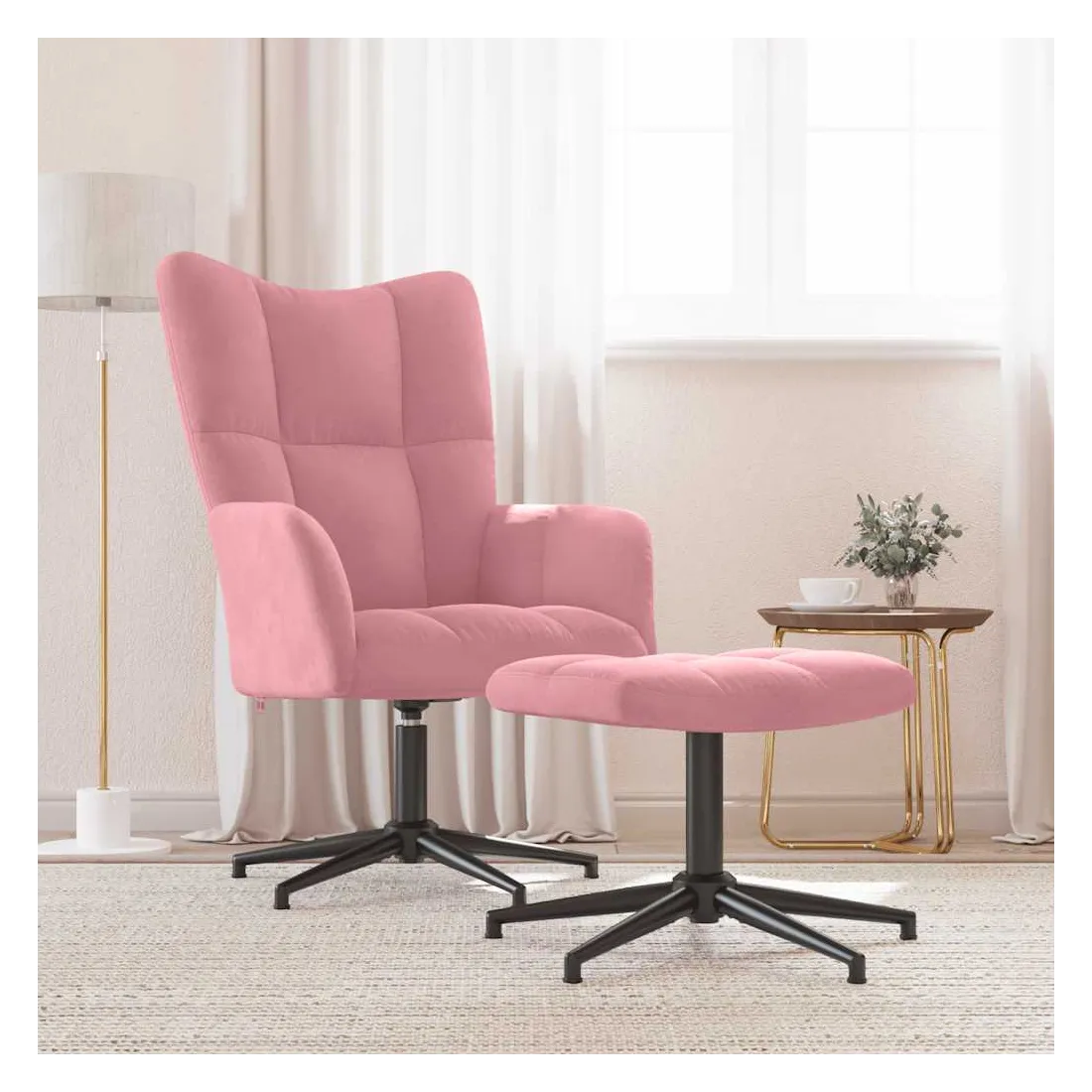 Cette chaise de relaxation avec repose-pied au design chic et élégant apportera une touche de modernité à votre déco. Avec quelques blocs, ce fauteuil est esthétique. Grâce à sa mousse bien rembourrée recouverte de velours doux au toucher, vous pourrez profiter d'un confort optimal pendant votre temps d'assise. Ce siège de relaxation peut pivoter à 360 degrés pour une grande flexibilité. De plus, soutenue par un cadre en acier et des pieds croisés, la chaise de relaxation avec un tabouret est stable et durable.
