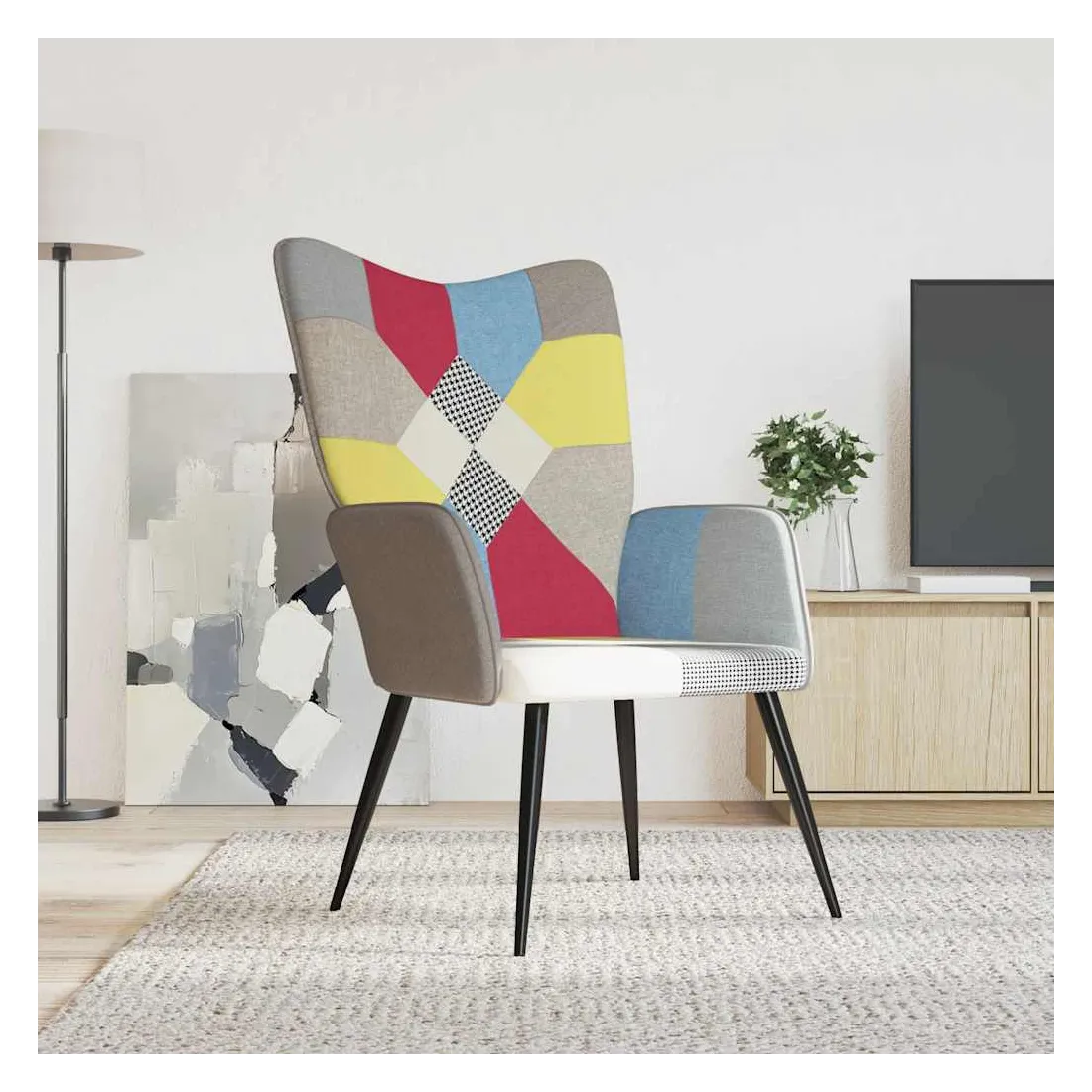 Cette chaise de relaxation au design chic et élégant apportera une touche de modernité à votre décoration. Avec un design de patchwork vif, ce fauteuil est esthétiquement agréable. Grâce à sa mousse rembourrée recouverte d'un tissu doux au toucher, vous pourrez profiter d'un confort optimal pendant votre temps d'assise. De plus, soutenu par un cadre en acier, la chaise de relaxation est stable et durable.