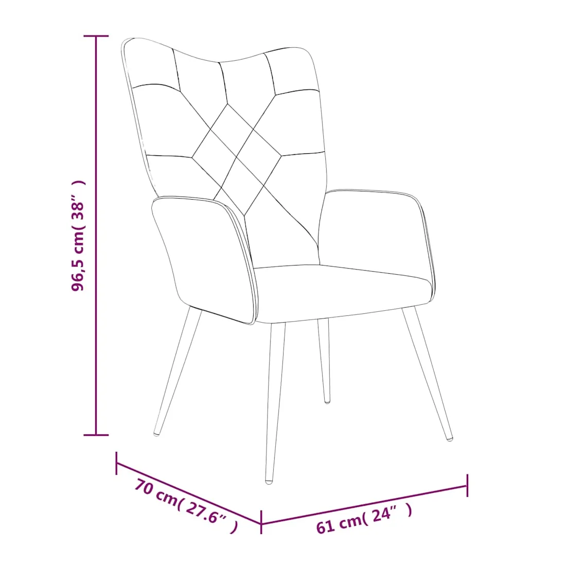 - Hauteur des accoudoirs à partir du sol : 58,5 cm