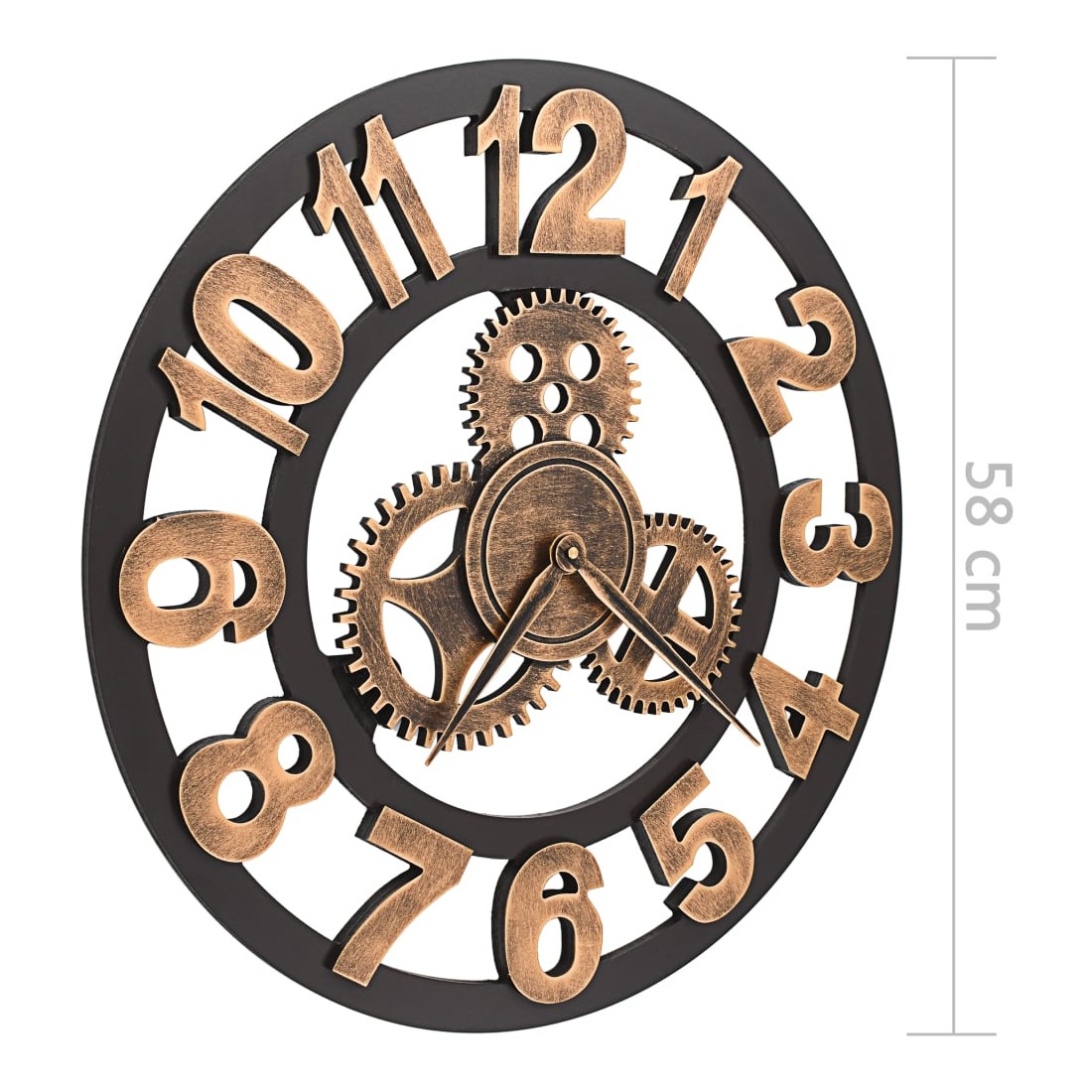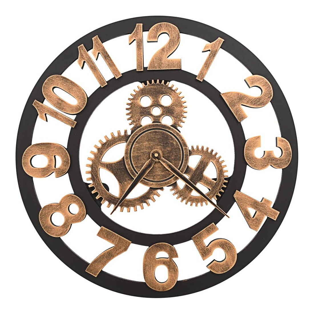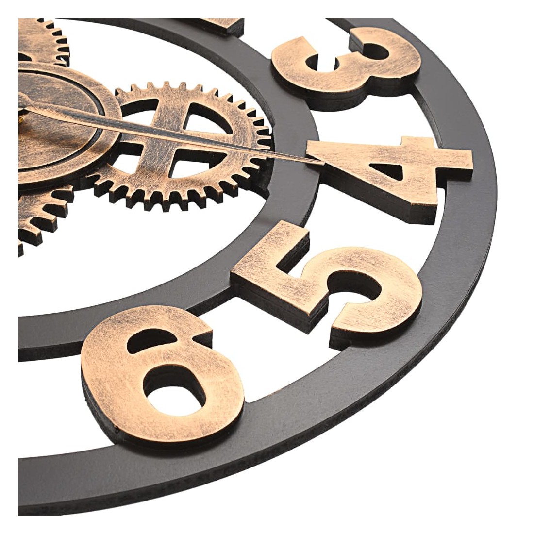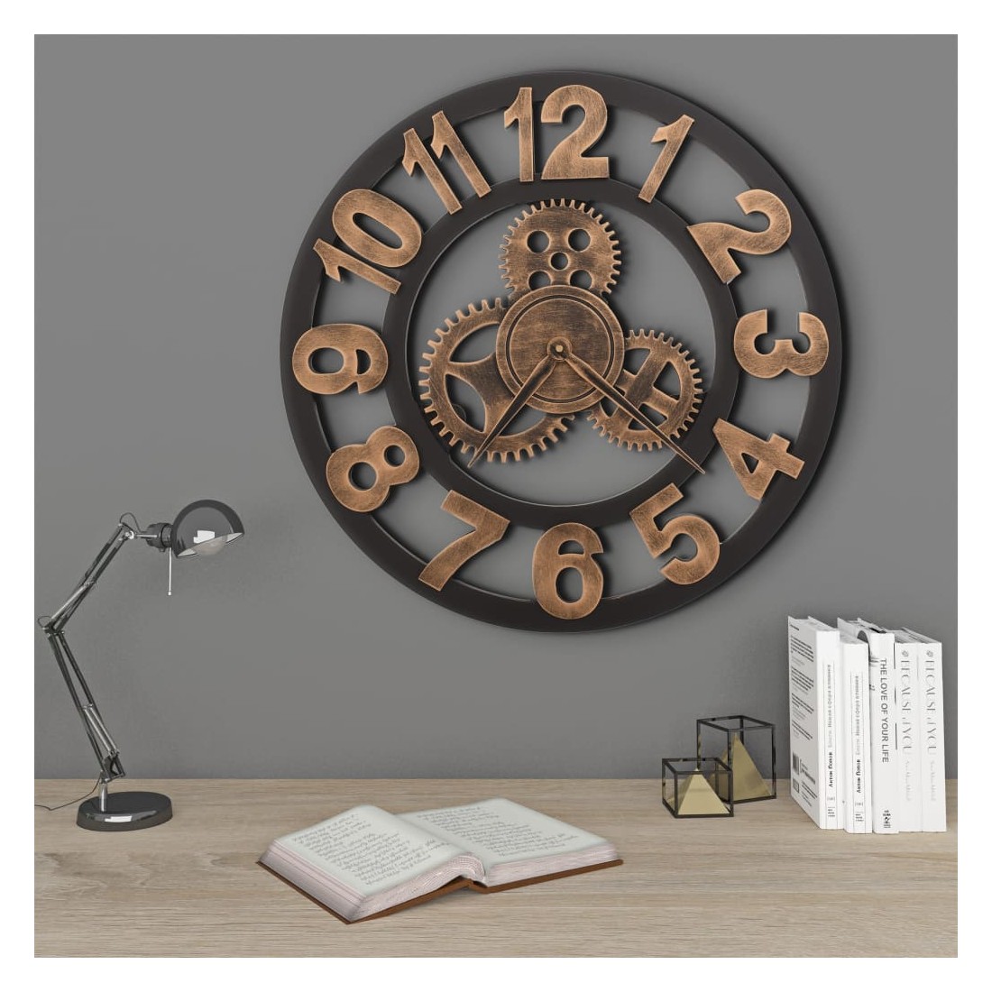 Apportez une pièce maîtresse dans votre espace avec notre superbe horloge murale en métal doré ! Distinguée par des détails uniques du mécanisme, cette horloge murale est une pièce vraiment magnifique et sera un excellent supplément à l'intérieur de votre maison. L'horloge a une construction robuste en métal et en MDF, ce qui la rend très durable. Avec des mouvements à quartz, l'horloge est précise à tenir l'heure. Grâce au grand cadran et aux chiffres clairs, l'horloge peut être lue clairement, même à partir de longues distances. Elle peut être facilement accrochée au mur.