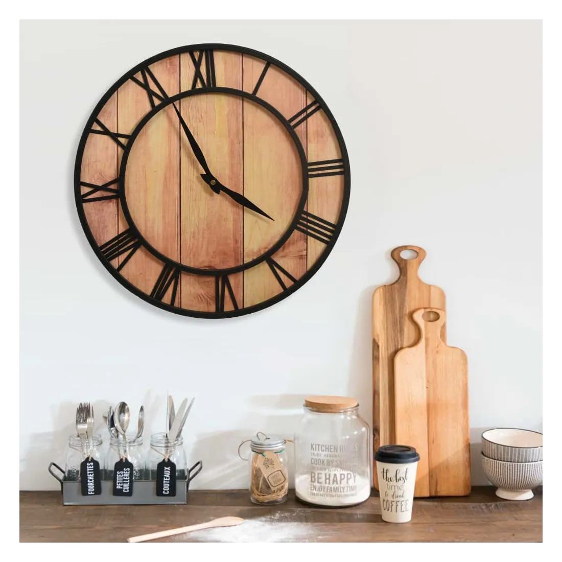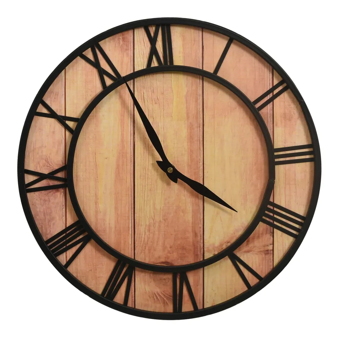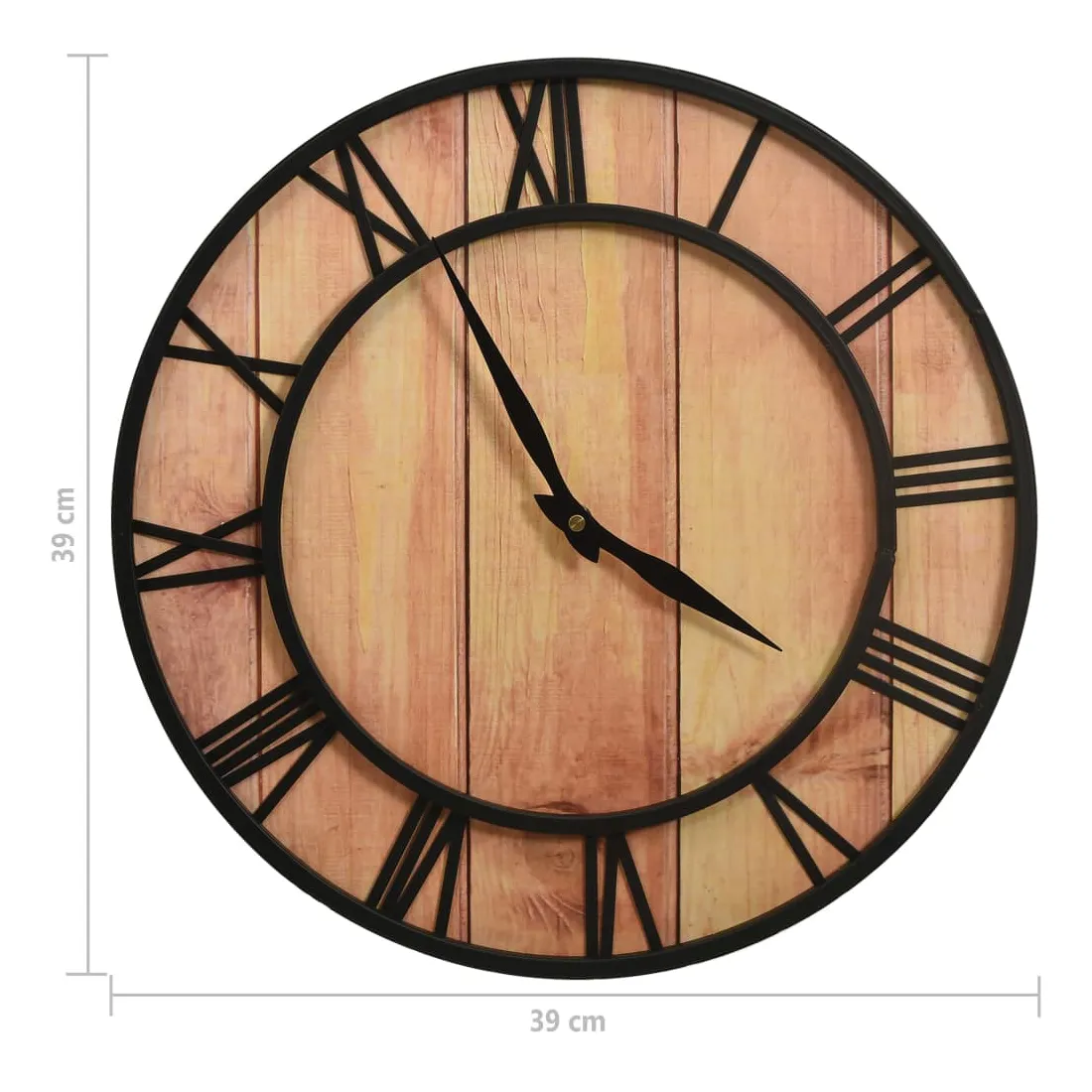 Ajoutez un élément central dans votre espace de vie avec cette horloge murale ! Elle dégage un charme vintage, ce qui en fait une décoration attrayante pour votre maison. Cette horloge est faite de MDF et de fer, ce qui la rend robuste. L’horloge murale présente une forme ronde et des chiffres romains pour créer un effet symétrique et élégant. L’horloge peut être lue clairement même à longue distance avec son grand cadran et les chiffres clairs.
