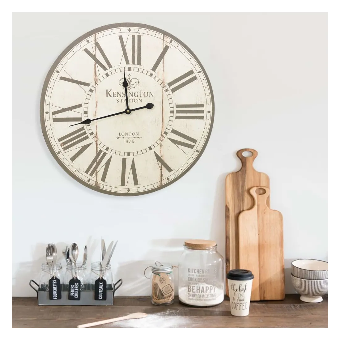 Cette horloge murale de style rétro sera un excellent supplément à la décoration de votre pièce ! L'horloge a un cadre en MDF robuste et est très durable. Grâce à la grande face du cadran et aux chiffres clairs, l'horloge peut être lue clairement même sur de longues distances. Elle peut être facilement accrochée au mur. L'horloge ajoutera une touche de nostalgie à votre intérieur.