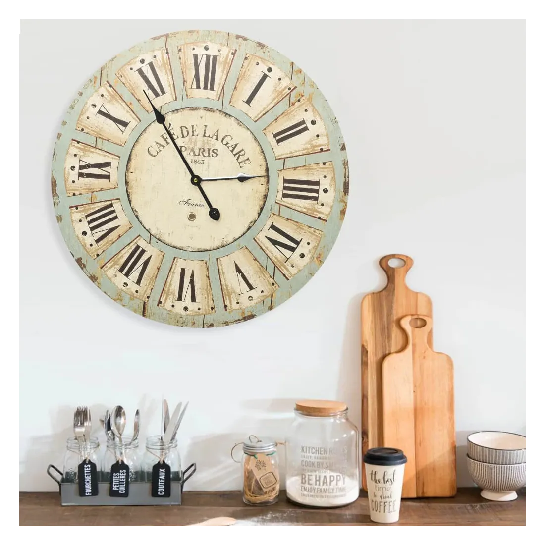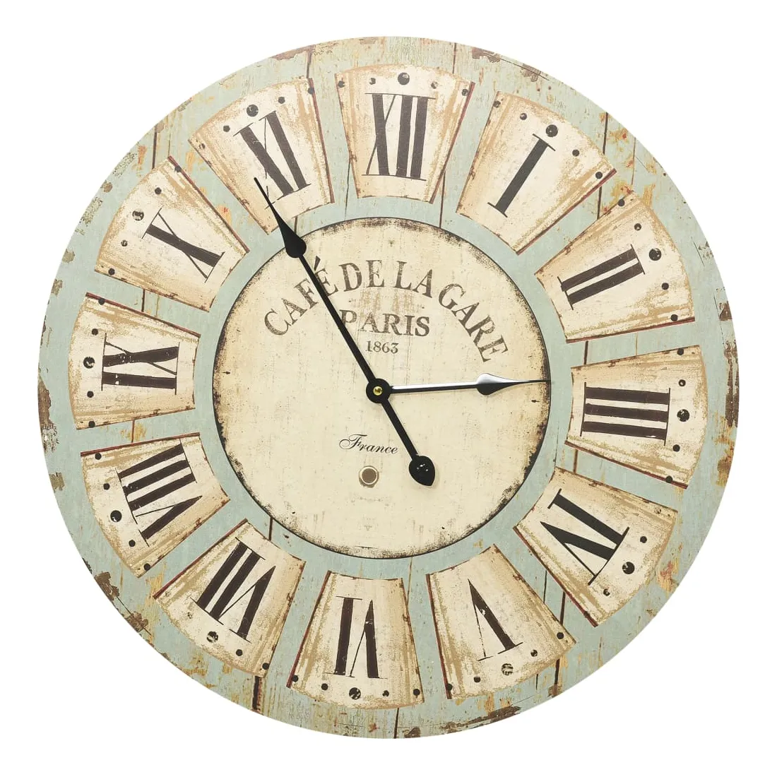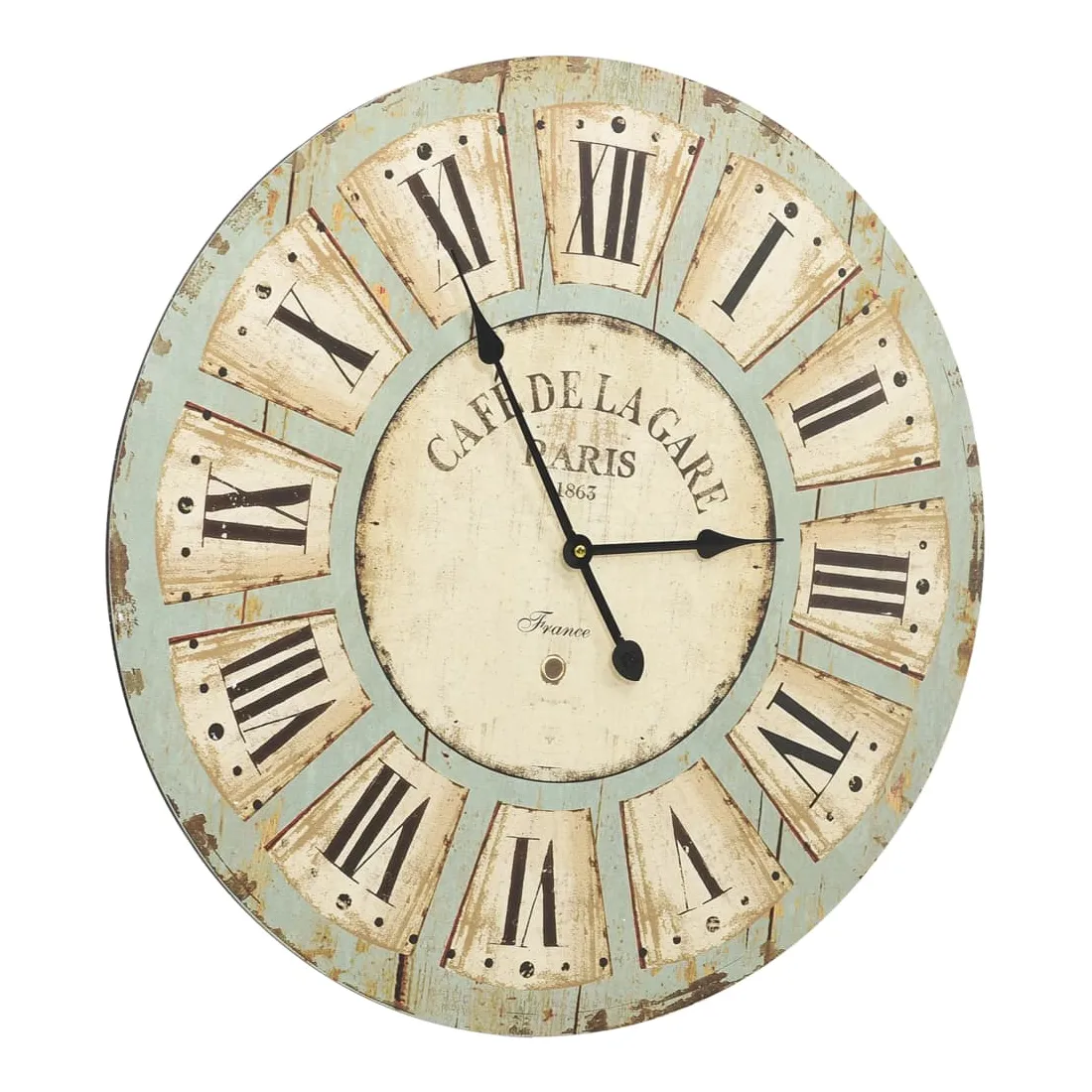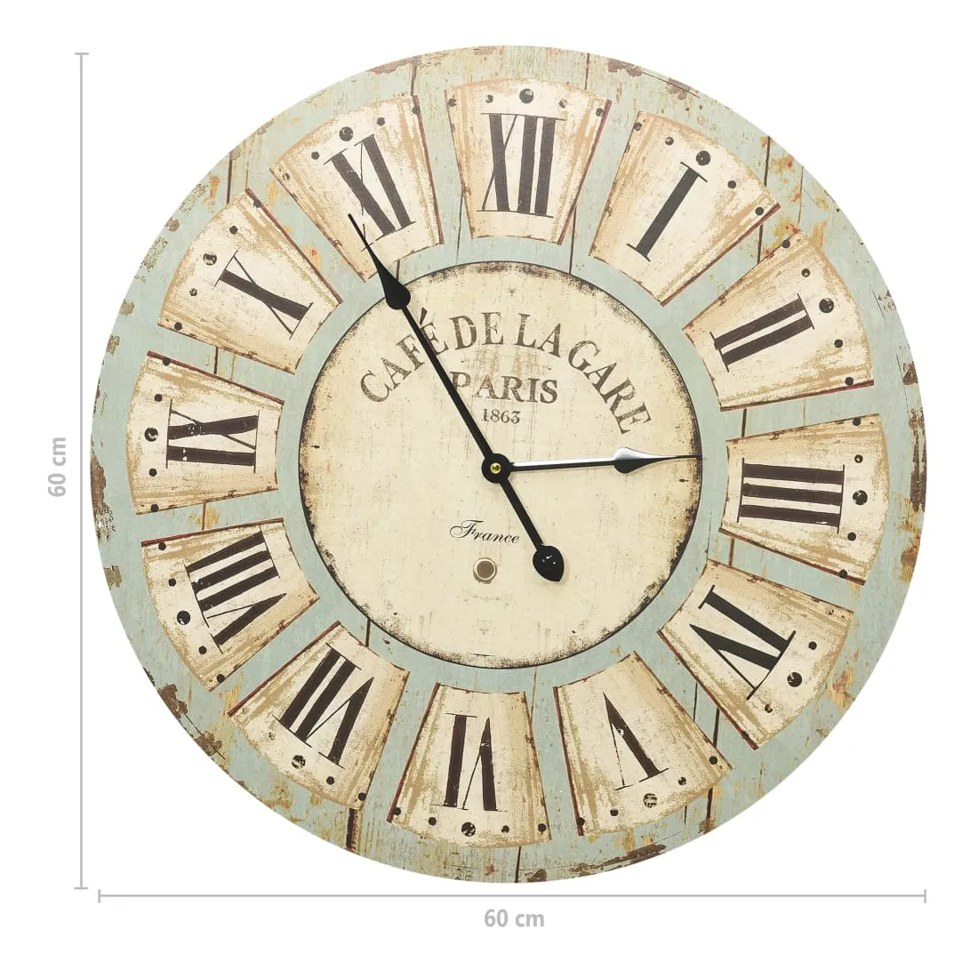 Apportez un élément central dans votre espace de vie avec cette horloge murale ! Elle dégage un charme vintage et constitue une décoration attrayante à votre maison avec son design unique. La horloge présente une construction en MDF robuste. Grâce au cadran large et aux chiffres clairs, l'horloge peut être lue clairement, même à partir de longues distances.
