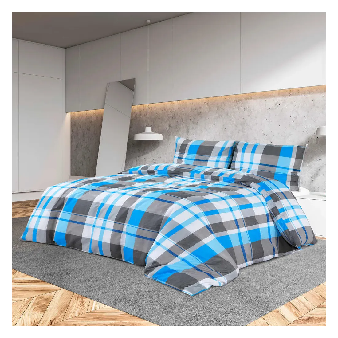 Ensemble de housse de couette Bleu et gris 135x200 cm Coton