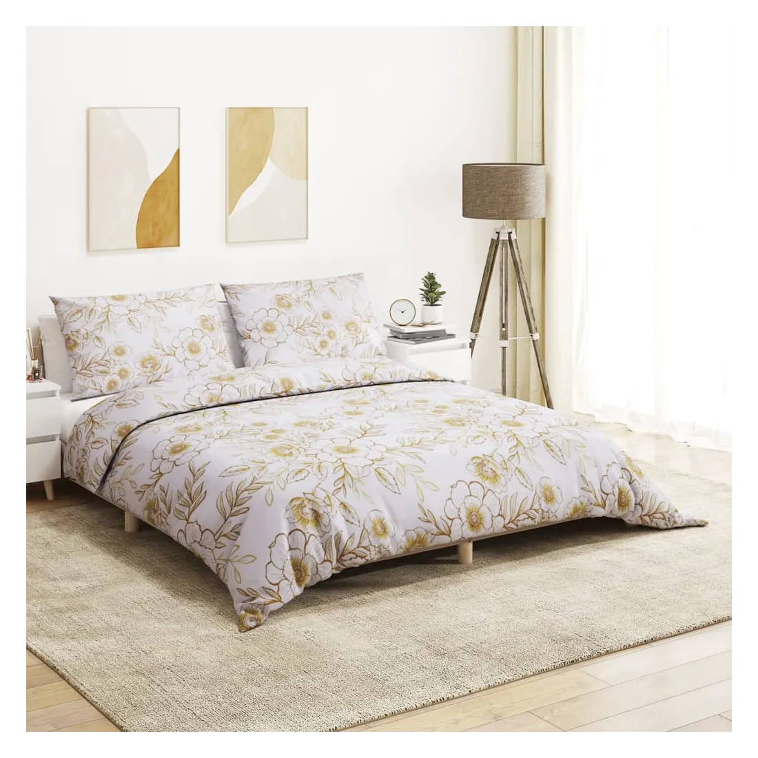 Ensemble de housse de couette blanc et marron 200x200 cm Coton