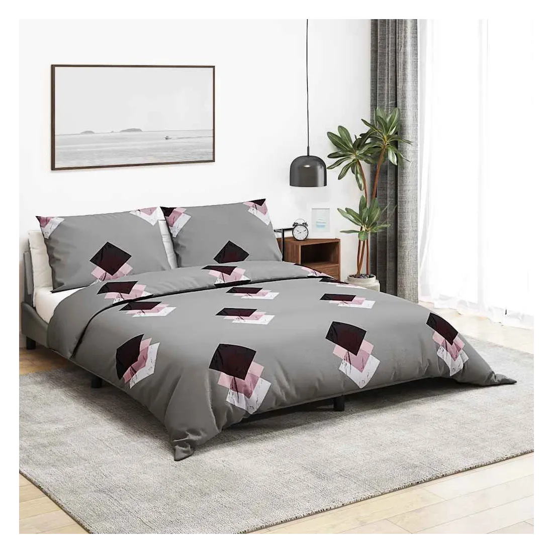 Ensemble de housse de couette Gris 155x220 cm Coton