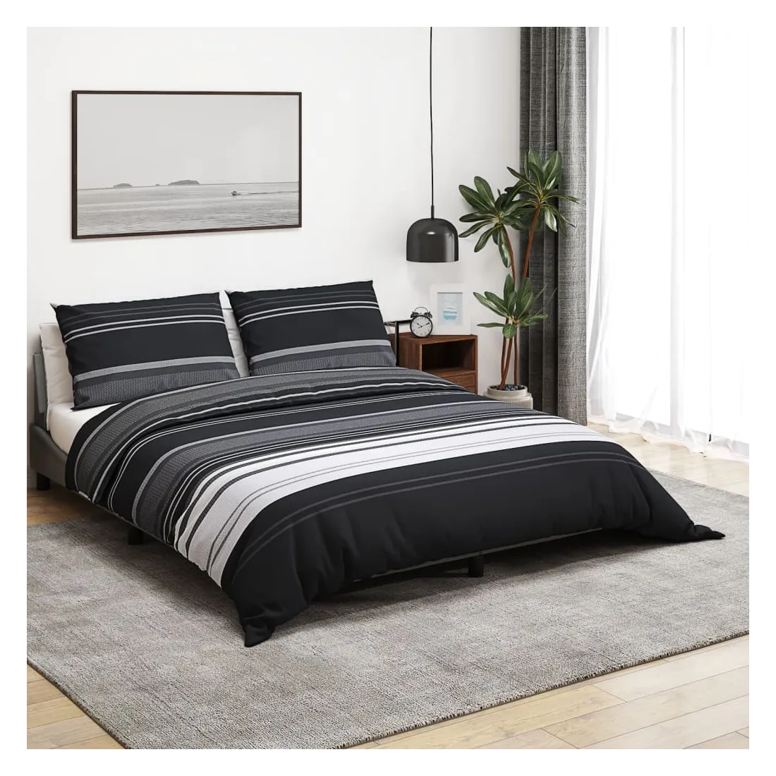 Ensemble de housse de couette noir et blanc 200x200 cm Coton
