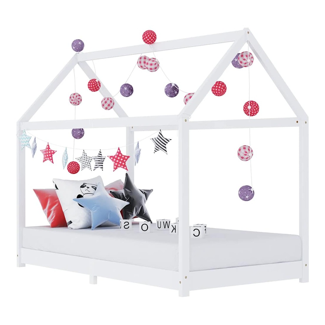 Créez le refuge ultime dans la chambre de vos enfants avec notre cadre de lit fantastique ! Le lit est intelligemment conçu avec un cadre de style maison dans un arbre où vous pouvez accrocher des rideaux de lit pour créer de l'intimité pour votre enfant. Il peut également être utilisé comme coin lecture ou maison de jeu pour votre enfant. Fabriqué en bois de pin massif, ce cadre de lit est extrêmement robuste et durable. Les lattes résistantes offrent le soutien nécessaire et sont très confortables. Ce cadre de lit convient à un matelas de 90 x 200 cm. Veuillez noter que la livraison inclut un cadre de lit seulement ; un matelas et les rideaux ne sont pas inclus. Le lit est facile à assembler. Vous pouvez chercher le matelas correspondant dans notre boutique.
