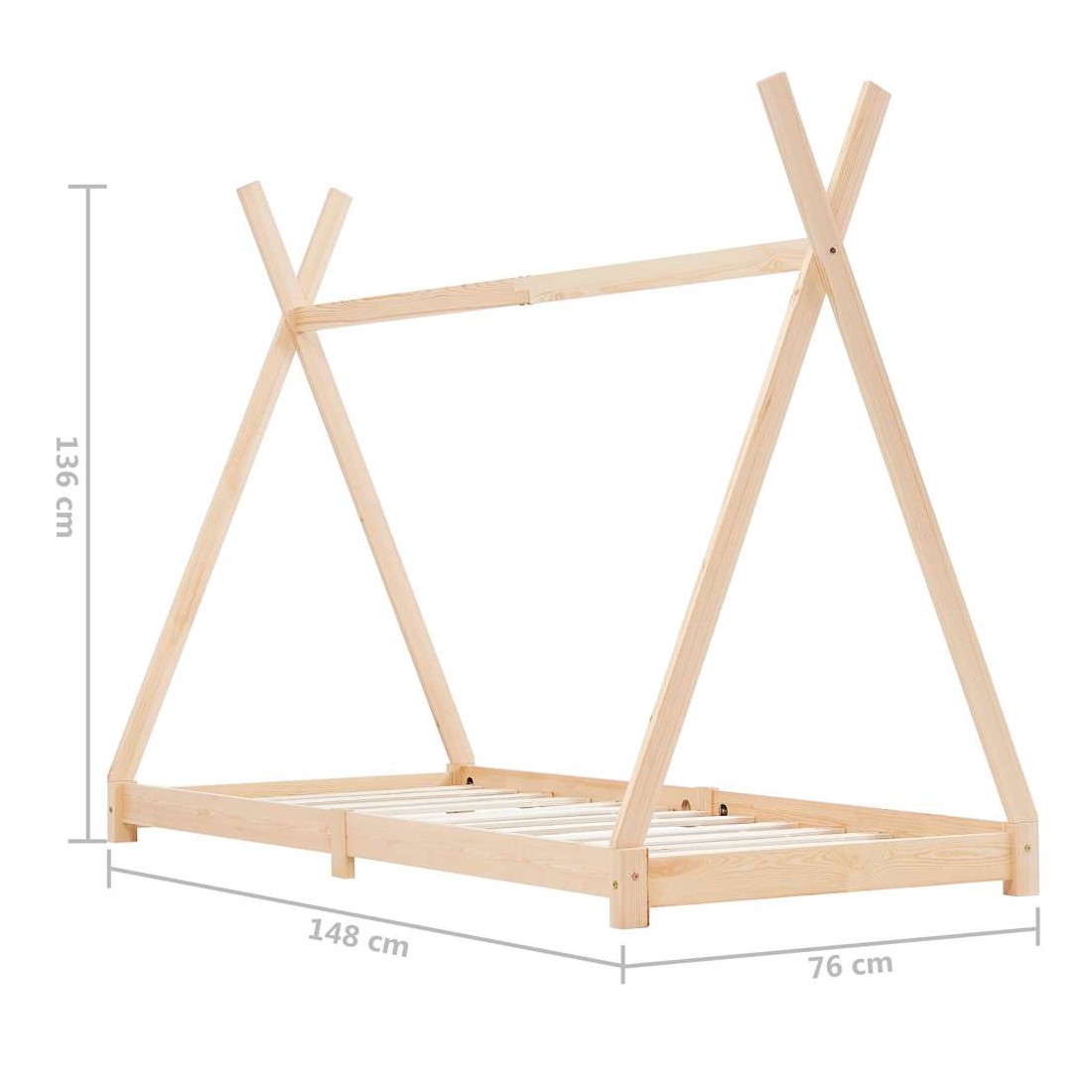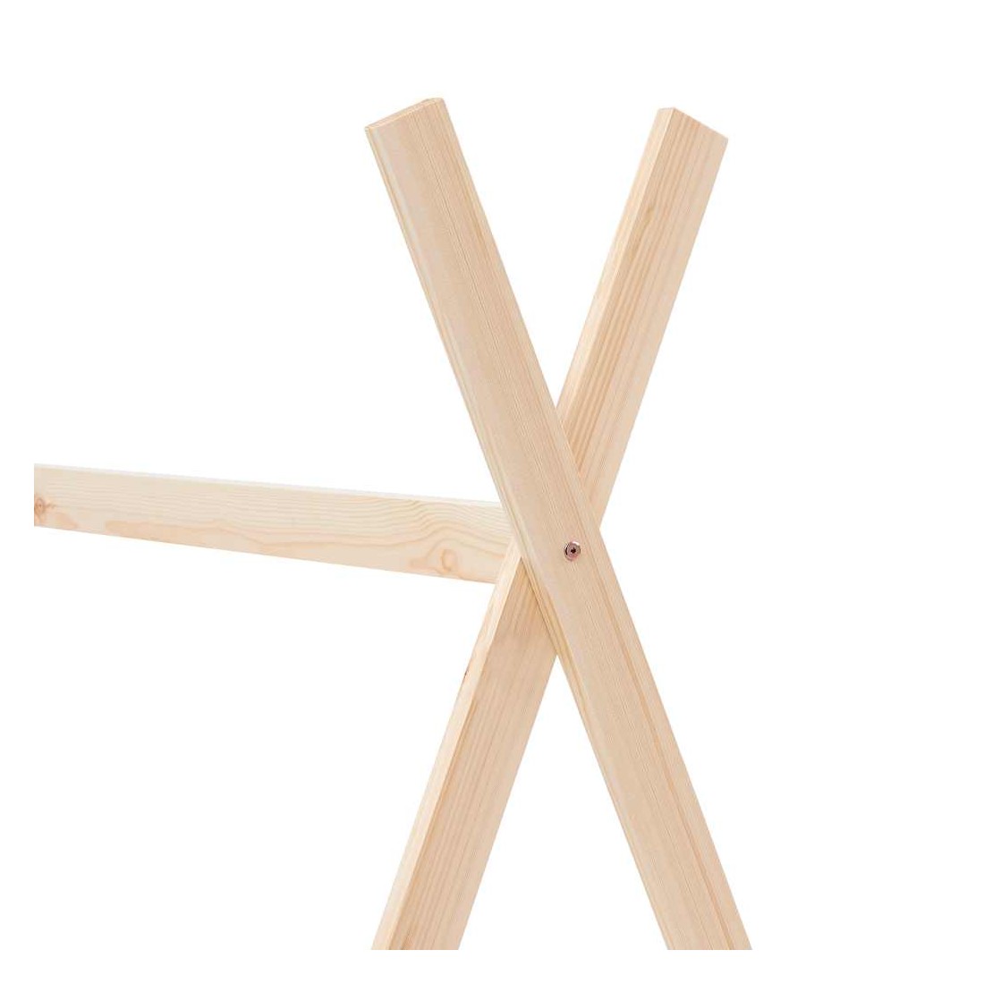 Créez le refuge ultime dans la chambre de vos enfants avec notre cadre de lit fantastique ! Le lit présente un cadre croisé innovant inspiré des tentes de style tipi cool où vous pouvez accrocher des rideaux de lit pour créer de l'intimité pour votre enfant. Il peut également être utilisé comme coin lecture ou maison de jeu pour votre enfant. Fabriqué en bois de pin massif, ce cadre de lit est extrêmement robuste et durable. Les lattes résistantes offrent le soutien nécessaire et sont très confortables. Ce cadre de lit convient à un matelas de 70 x 140 cm. Veuillez noter que la livraison inclut un cadre de lit seulement ; un matelas et les rideaux ne sont pas inclus. Le lit est facile à assembler. Vous pouvez chercher le matelas correspondant dans notre boutique.