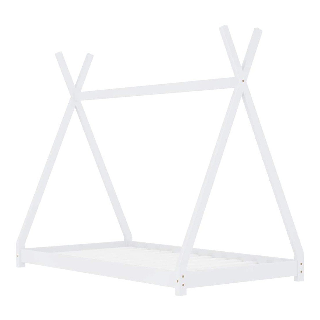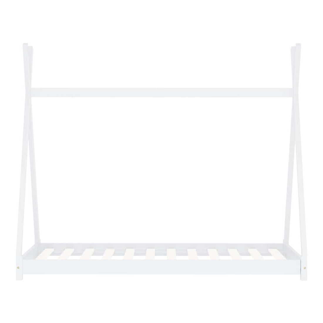 Créez le refuge ultime dans la chambre de vos enfants avec notre cadre de lit fantastique ! Le lit présente un cadre croisé innovant inspiré des tentes de style tipi cool où vous pouvez accrocher des rideaux de lit pour créer de l'intimité pour votre enfant. Il peut également être utilisé comme coin lecture ou maison de jeu pour votre enfant. Fabriqué en bois de pin massif, ce cadre de lit est extrêmement robuste et durable. Les lattes résistantes offrent le soutien nécessaire et sont très confortables. Ce cadre de lit convient à un matelas de 70 x 140 cm. Veuillez noter que la livraison inclut un cadre de lit seulement ; un matelas et les rideaux ne sont pas inclus. Le lit est facile à assembler. Vous pouvez chercher le matelas correspondant dans notre boutique.