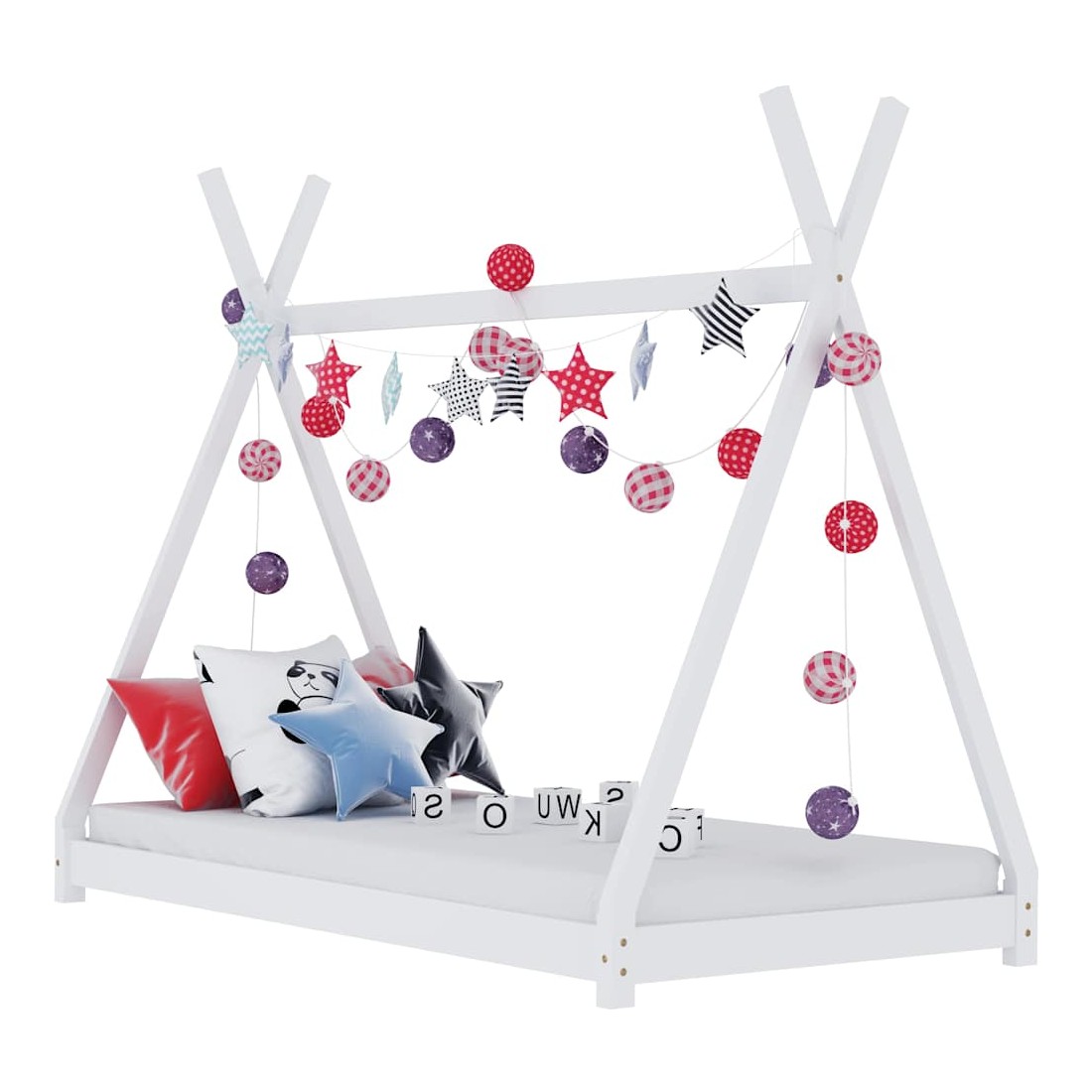 Créez le refuge ultime dans la chambre de vos enfants avec notre cadre de lit fantastique ! Le lit présente un cadre croisé innovant inspiré des tentes de style tipi cool où vous pouvez accrocher des rideaux de lit pour créer de l'intimité pour votre enfant. Il peut également être utilisé comme coin lecture ou maison de jeu pour votre enfant. Fabriqué en bois de pin massif, ce cadre de lit est extrêmement robuste et durable. Les lattes résistantes offrent le soutien nécessaire et sont très confortables. Ce cadre de lit convient à un matelas de 80 x 160 cm. Veuillez noter que la livraison inclut un cadre de lit seulement ; un matelas et les rideaux ne sont pas inclus. Le lit est facile à assembler. Vous pouvez chercher le matelas correspondant dans notre boutique.
