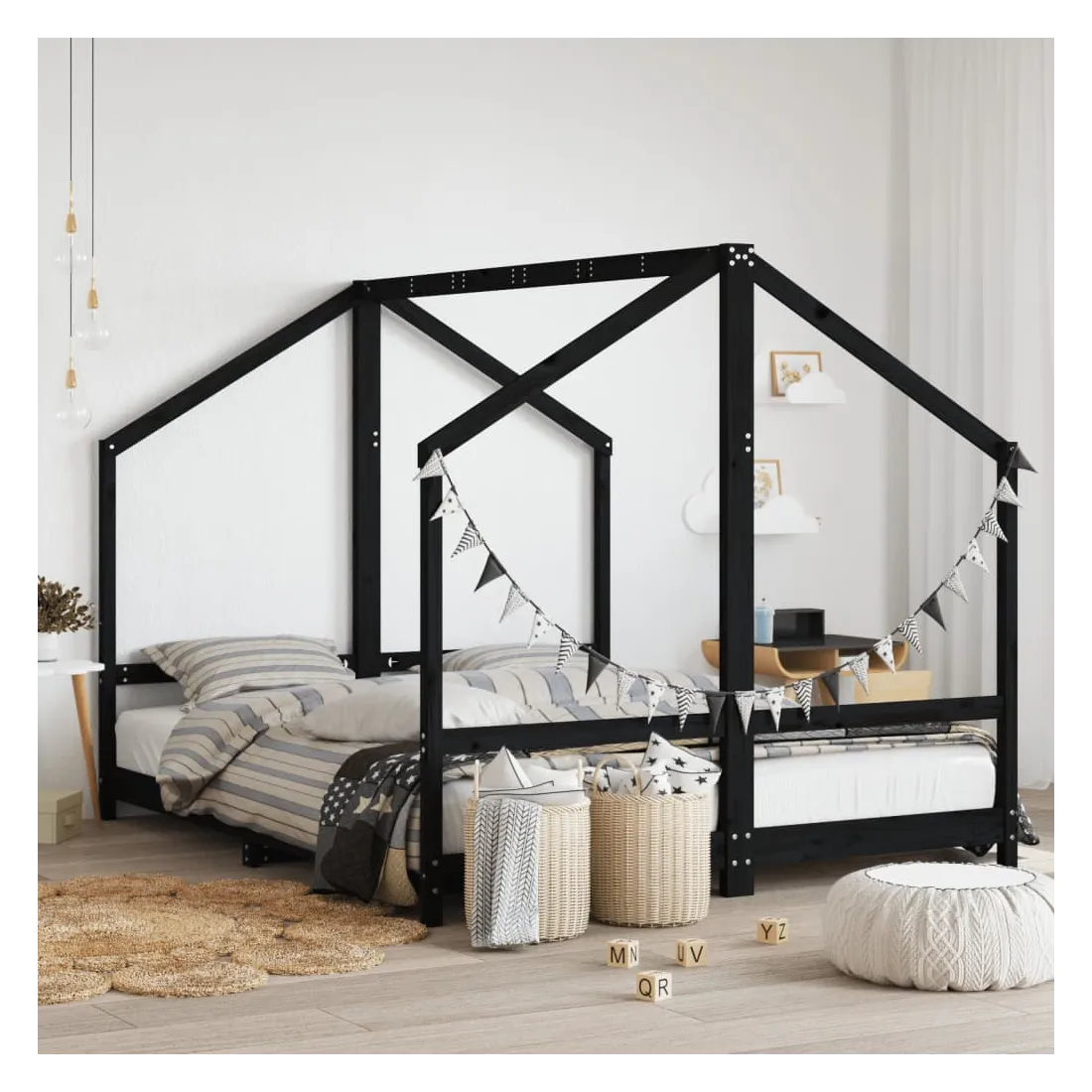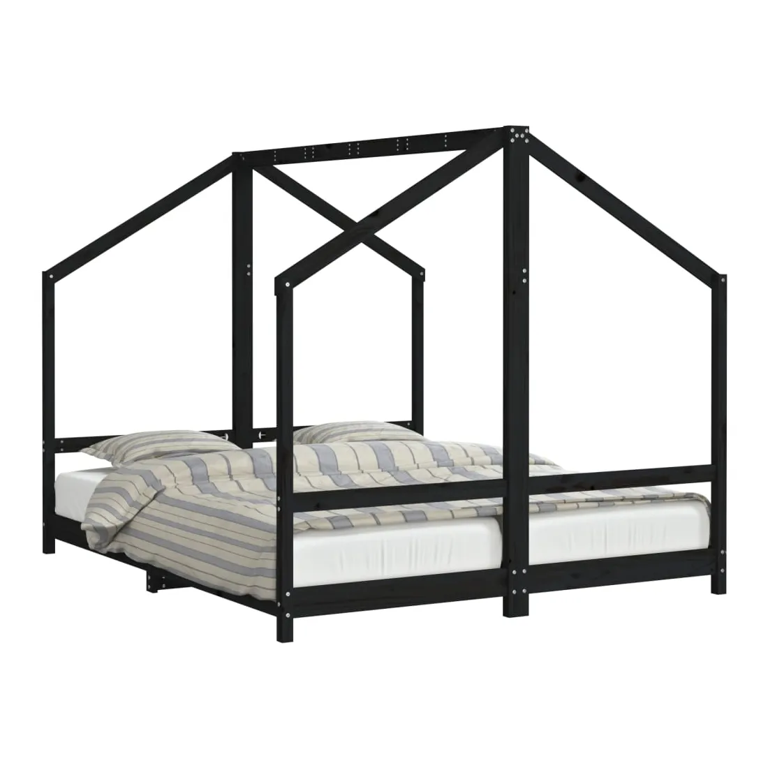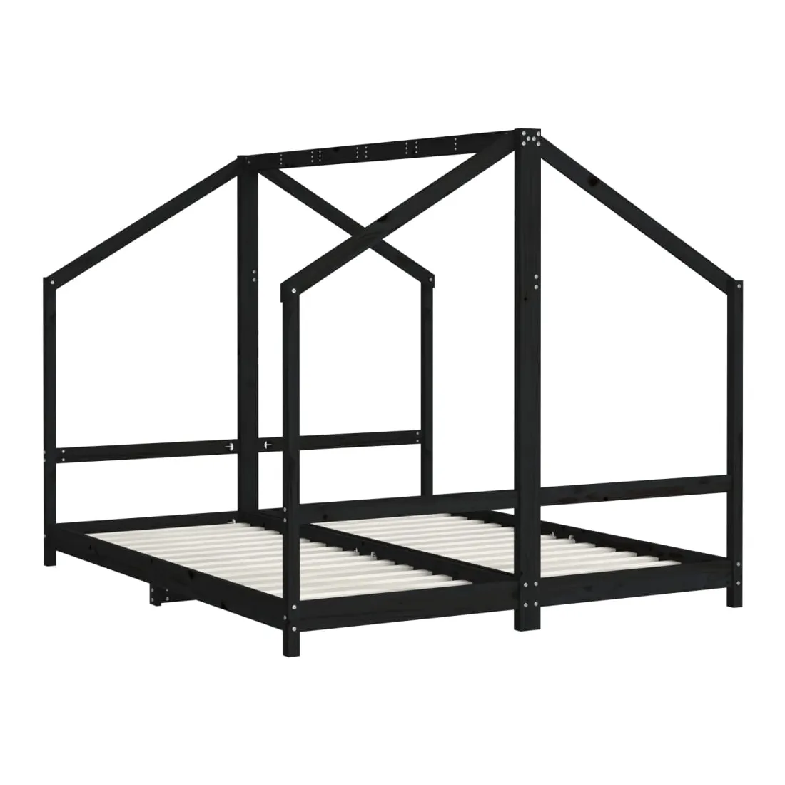 Cadre de lit pour enfants noir 2x(80x200) cm bois de pin massif
