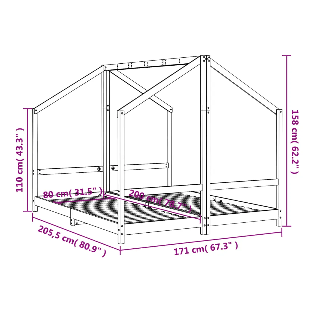 vidaXLCréez la cachette ultime dans la chambre de vos enfants avec ce fantastique cadre de lit en bois pour enfants ! Matériau durable : le bois de pin massif est un matériau naturel magnifique. Le bois de pin a un grain droit et les nœuds donnent au matériau son aspect caractéristique et rustique.Lattes en contreplaqué : les lattes en contreplaqué assurent une bonne répartition du poids, garantissant à votre matelas le soutien et la respirabilité dont il a tant besoin.Design réfléchi : la hauteur du lit pour enfant est conçue pour être basse par rapport au sol, ce qui facilite l'entrée et la sortie dans et du lit pour votre enfant.Design pratique : le lit pour enfant est intelligemment conçu avec un cadre de lit où vous pouvez accrocher des rideaux de lit pour créer de l'intimité pour votre enfant. Il ne sert pas seulement d'espace de sommeil confortable, mais aussi d'espace de jeu et d'amusement pour vos enfants. Bon à savoir :Les matelas ne sont pas inclus avec ce lit. Nous proposons une sélection variée de matelas. Vous pouvez consulter notre boutique pour trouver les matelas assortis.