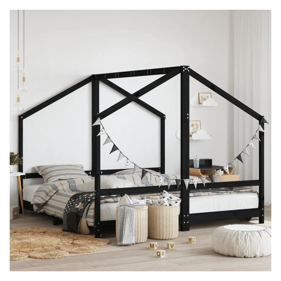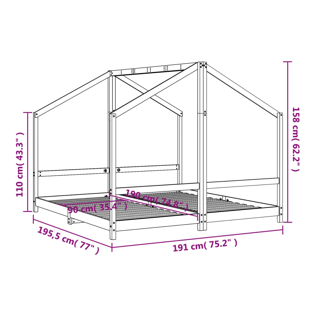 Créez la cachette ultime dans la chambre de vos enfants avec ce fantastique cadre de lit en bois pour enfants ! Matériau durable : le bois de pin massif est un matériau naturel magnifique. Le bois de pin a un grain droit et les nœuds donnent au matériau son aspect caractéristique et rustique.Lattes en contreplaqué : les lattes en contreplaqué assurent une bonne répartition du poids, garantissant à votre matelas le soutien et la respirabilité dont il a tant besoin.Design réfléchi : la hauteur du lit pour enfant est conçue pour être basse par rapport au sol, ce qui facilite l'entrée et la sortie dans et du lit pour votre enfant.Design pratique : le lit pour enfant est intelligemment conçu avec un cadre de lit où vous pouvez accrocher des rideaux de lit pour créer de l'intimité pour votre enfant. Il ne sert pas seulement d'espace de sommeil confortable, mais aussi d'espace de jeu et d'amusement pour vos enfants. Bon à savoir :Les matelas ne sont pas inclus avec ce lit. Nous proposons une sélection variée de matelas. Vous pouvez consulter notre boutique pour trouver les matelas assortis.