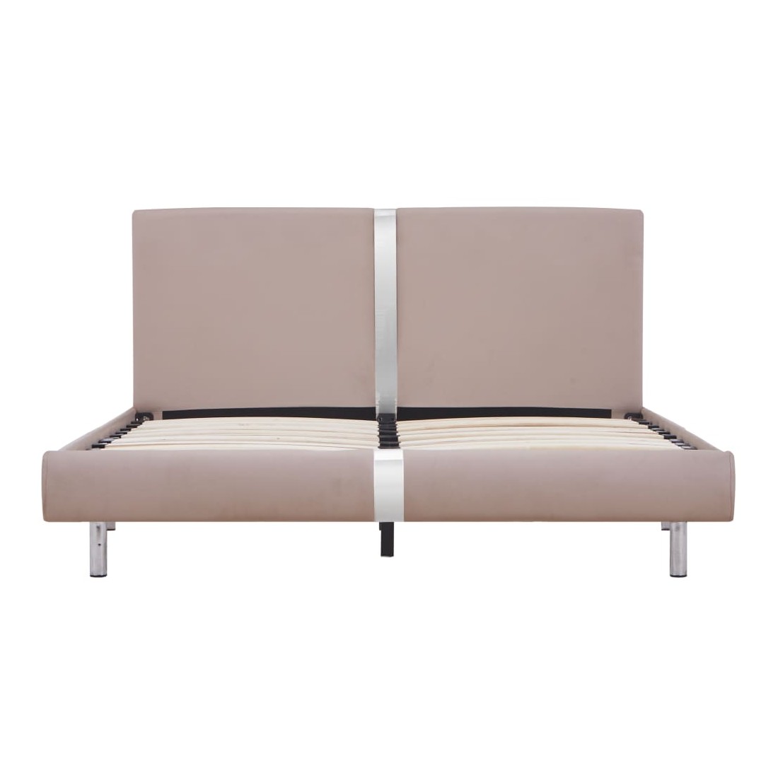 Ce cadre de lit classique deviendra l'attraction principale de votre chambre à coucher. Se distinguant par un design sobre mais élégant, ce cadre de lit ajoute une touche de charme élégant à la décoration de votre chambre à coucher. Fabriqué de fer enduit de poudre en MDF, ce cadre de lit est extrêmement robuste et durable. Les pieds en acier ajoutent de la durabilité au lit. De plus, recouvert de similicuir durable, le lit dégage un look accueillant et se nettoie facilement. Ce cadre de lit convient à un matelas de 140 x 200 cm. Veuillez noter que la livraison inclut un cadre de lit seulement ; un matelas n'est pas inclus. Le lit est facile à assembler. Vous pouvez chercher le matelas correspondant dans notre boutique.