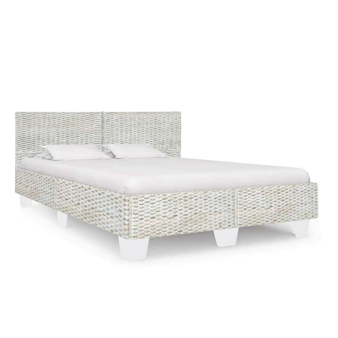 Cadre de lit sans matelas Gris Rotin naturel 140x200 cm