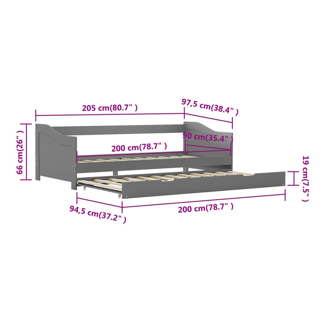 Cadre de lit extensible sans matelas gris 90x200 cm