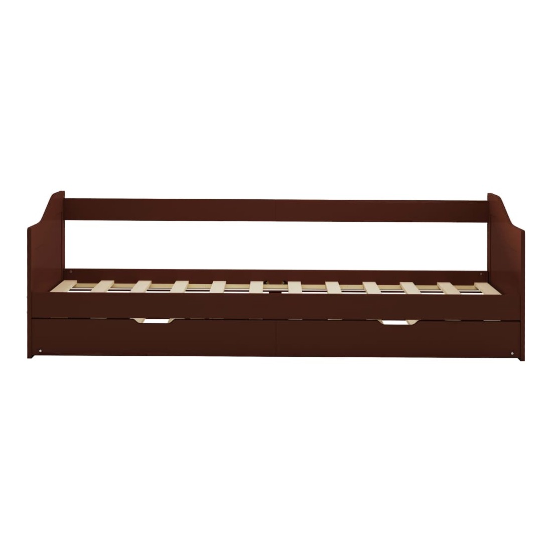 Combinant le luxe d'un canapé avec la commodité d'un lit d'invités, notre canapé-lit multifonctionnel sera sûrement un ajout pratique et accrocheur à n'importe quel intérieur ! Doté d'un lit inférieur escamotable équipé de 4 roulettes, le meuble peut être facilement transformé en canapé pendant la journée et en lit confortable la nuit. Ce cadre de canapé-lit maximise l'espace au sol disponible tout en offrant un espace de couchage pour deux personnes, ce qui en fait un choix idéal pour les personnes ayant un espace de vie limité. De plus, le lit inférieur est équipé d'une planche latérale qui empêchera l'utilisateur de rouler pendant son sommeil. Le cadre de lit entier a une construction en bois robuste, ce qui le rend très durable et adapté à une utilisation quotidienne. L'article est facile à assembler. Veuillez noter que la livraison comprend le cadre de lit uniquement, les matelas ne sont pas inclus. Vous pouvez consulter notre boutique pour les matelas assortis.