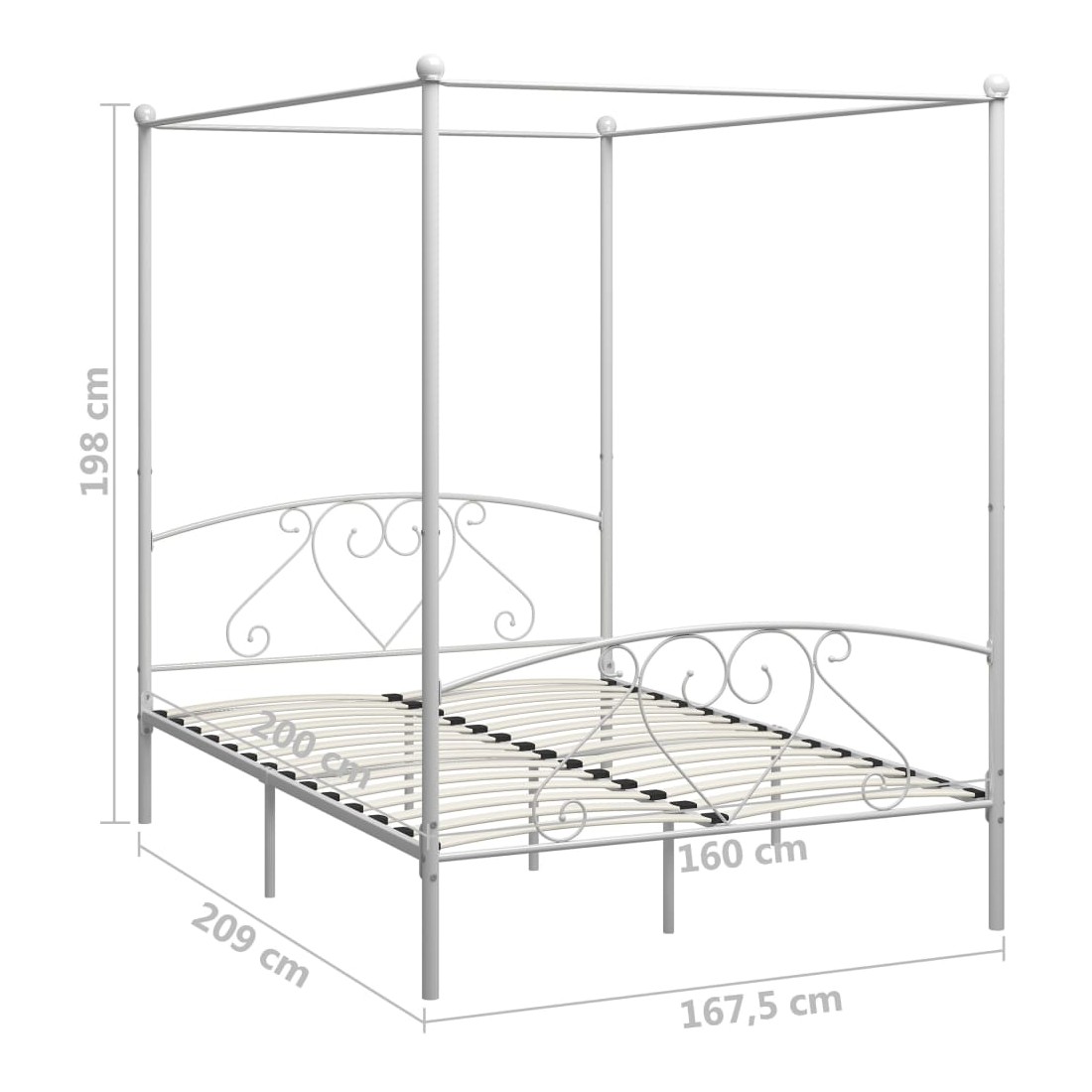 Cadre de lit à baldaquin Blanc 160x200 cm Métal