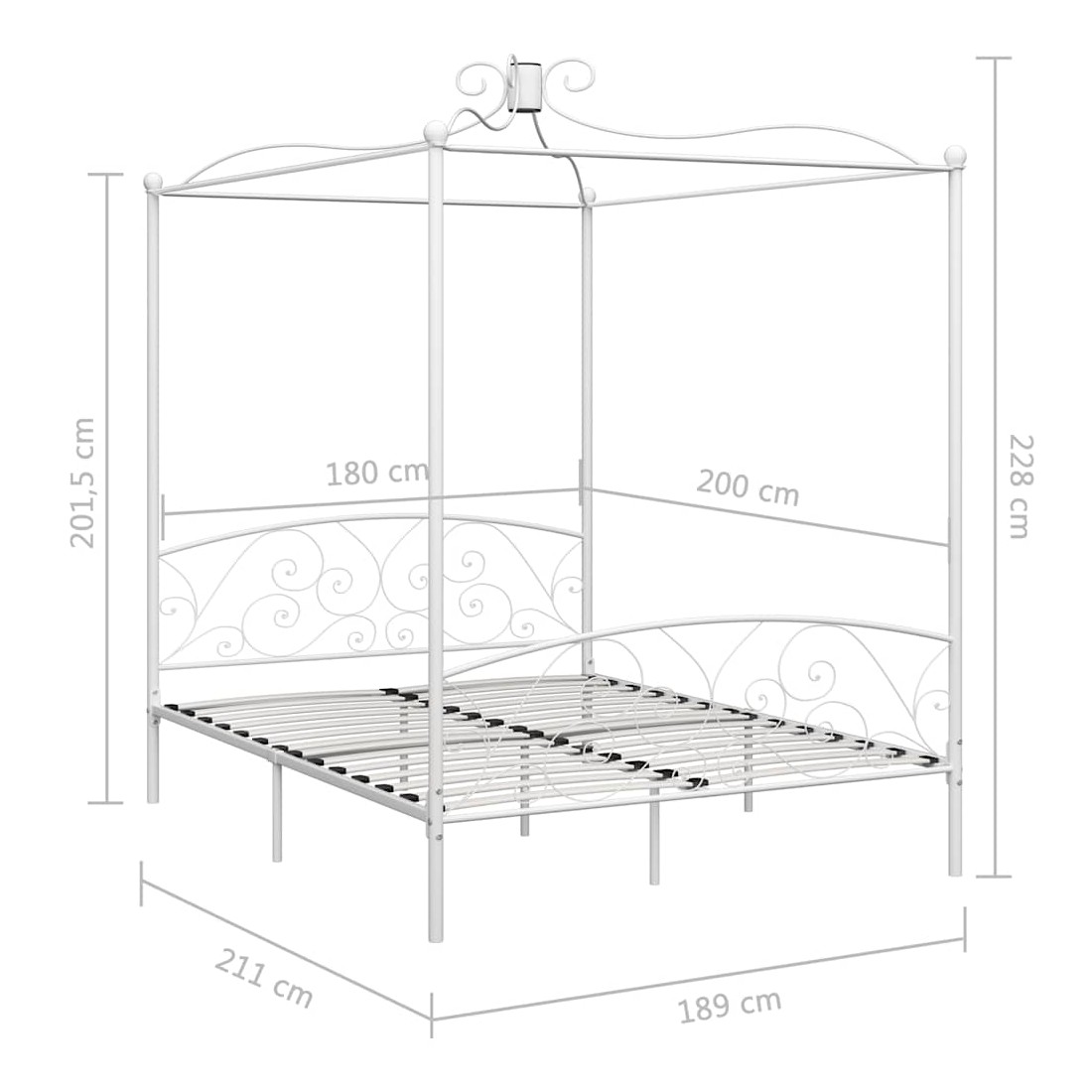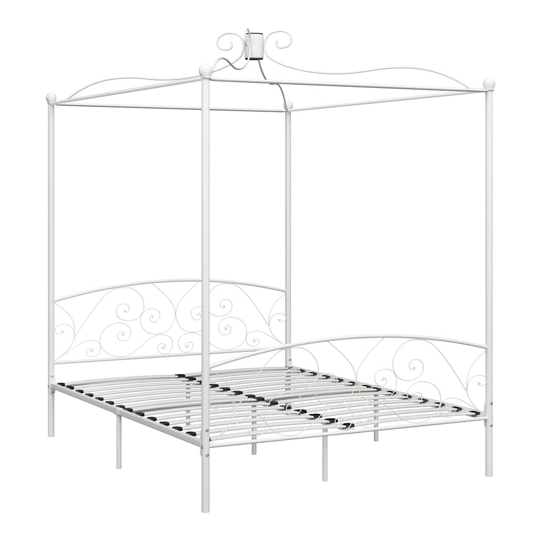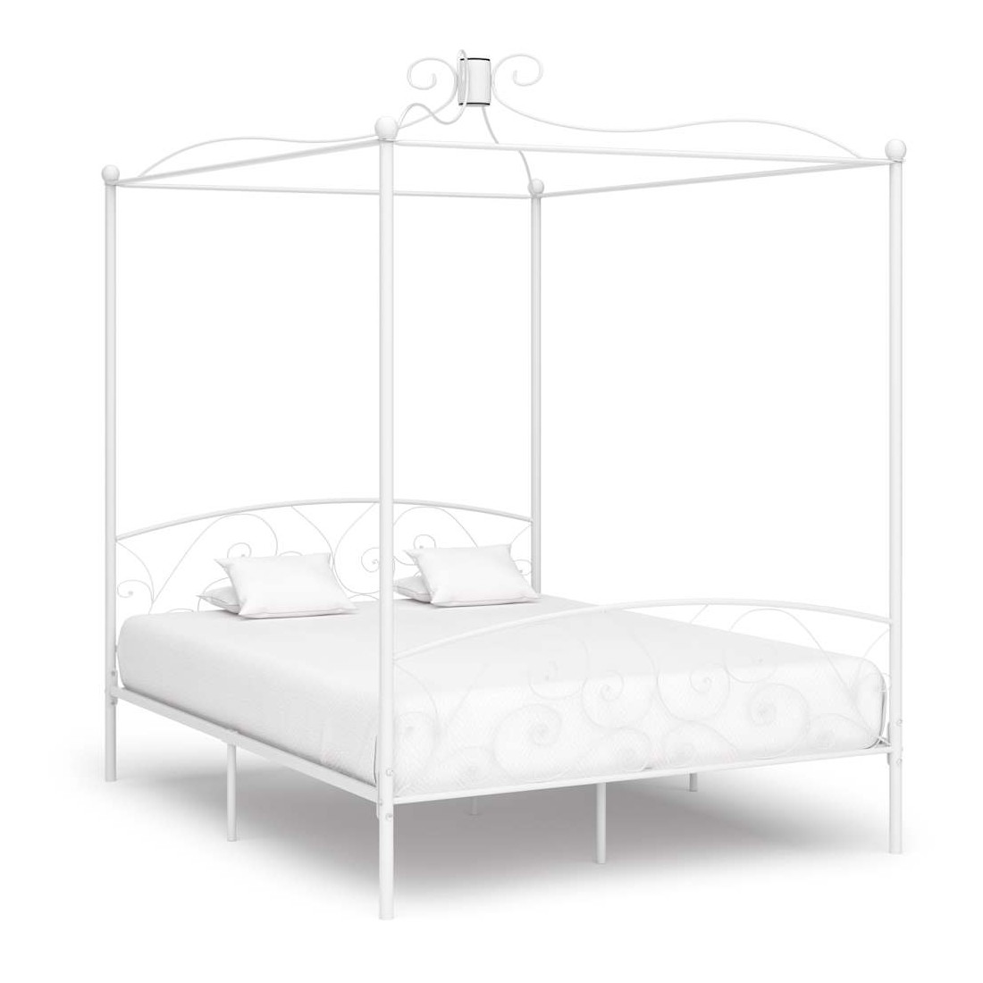 Donnez un aspect élégant et classique à votre chambre à coucher avec notre cadre de lit à baldaquin en métal ! Le lit est intelligemment conçu avec un cadre supérieur pour accrocher vos rideaux ou votre moustiquaire préférés, ce qui ajoute un charme unique à votre chambre à coucher, tout en créant une intimité supplémentaire. Fabriqué en métal solide, ce cadre de lit est extrêmement robuste et durable. Avec toutes ces caractéristiques combinées, vous aurez certainement une bonne nuit de sommeil ! Le cadre du lit doit être assemblé. Veuillez noter que la livraison inclut un cadre de lit avec un sommier à lattes. Un matelas n'est pas inclus. Vous pouvez chercher le matelas correspondant dans notre boutique.