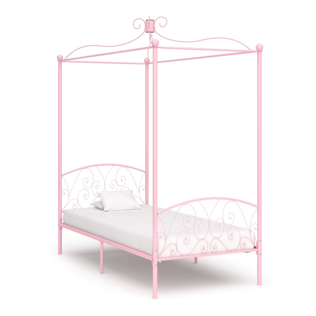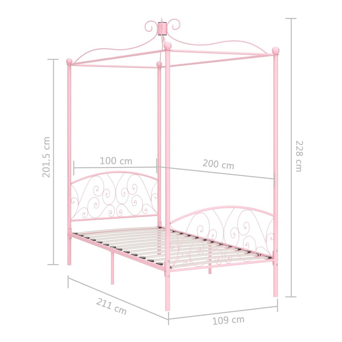 Cadre de lit à baldaquin sans matelas rose métal 100x200 cm