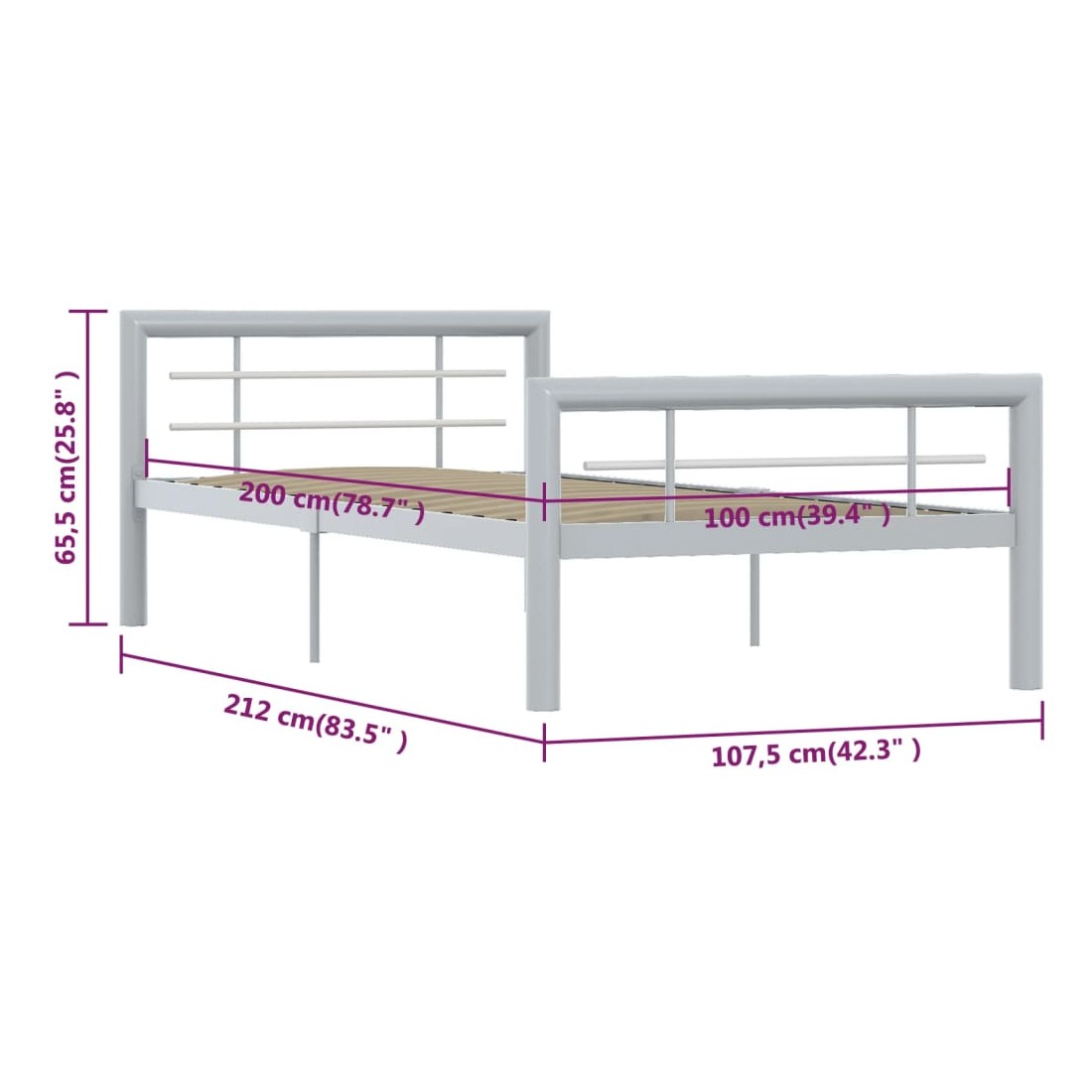 Cadre de lit sans matelas gris et blanc métal 100x200 cm