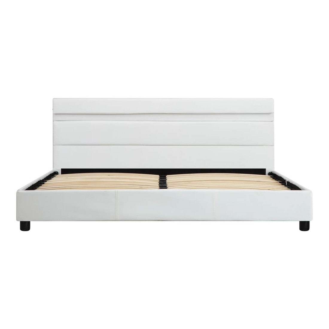 - Matériau : tapisserie en similicuir + cadre en fer enduit de poudre + lattes en bois