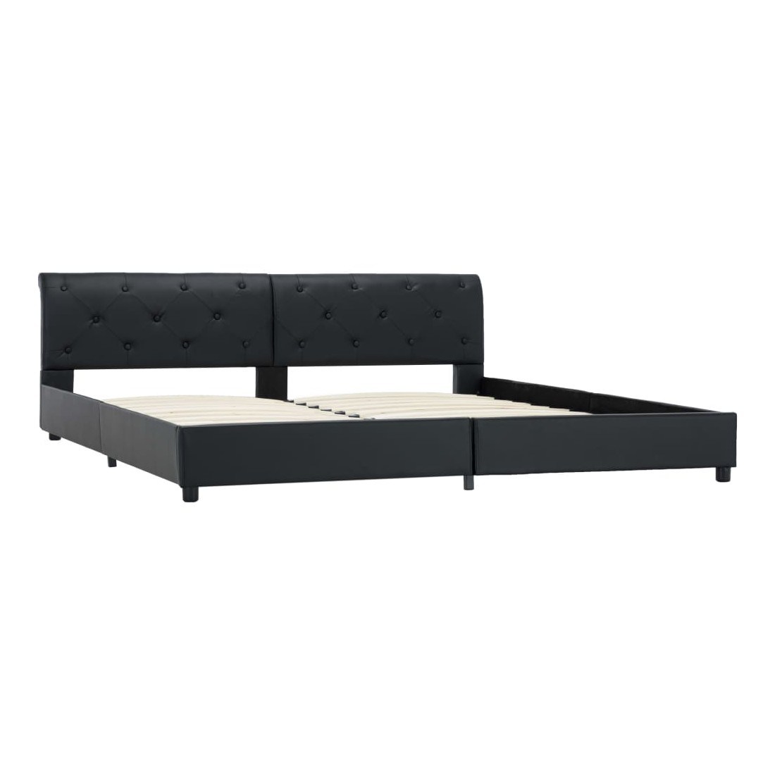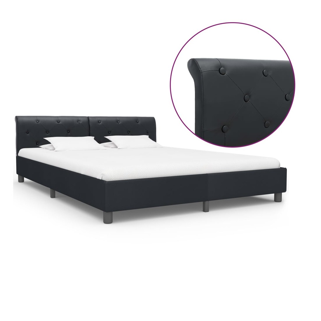 Ce cadre de lit classique deviendra l'attraction principale de votre chambre à coucher. Se distinguant par un design sobre mais élégant, ce cadre de lit ajoute une touche de charme élégant à la décoration de votre chambre à coucher. Fabriqué en bois et en MDF, ce cadre de lit est extrêmement robuste et durable. Les pieds en acier enduit de poudre ajoutent de la durabilité au lit. De plus, recouvert de similicuir durable, le lit dégage un look accueillant et se nettoie facilement. Ce cadre de lit convient à un matelas de 180 x 200 cm. Veuillez noter que la livraison inclut un cadre de lit seulement ; un matelas n'est pas inclus. Le lit est facile à assembler. Vous pouvez chercher le matelas correspondant dans notre boutique.