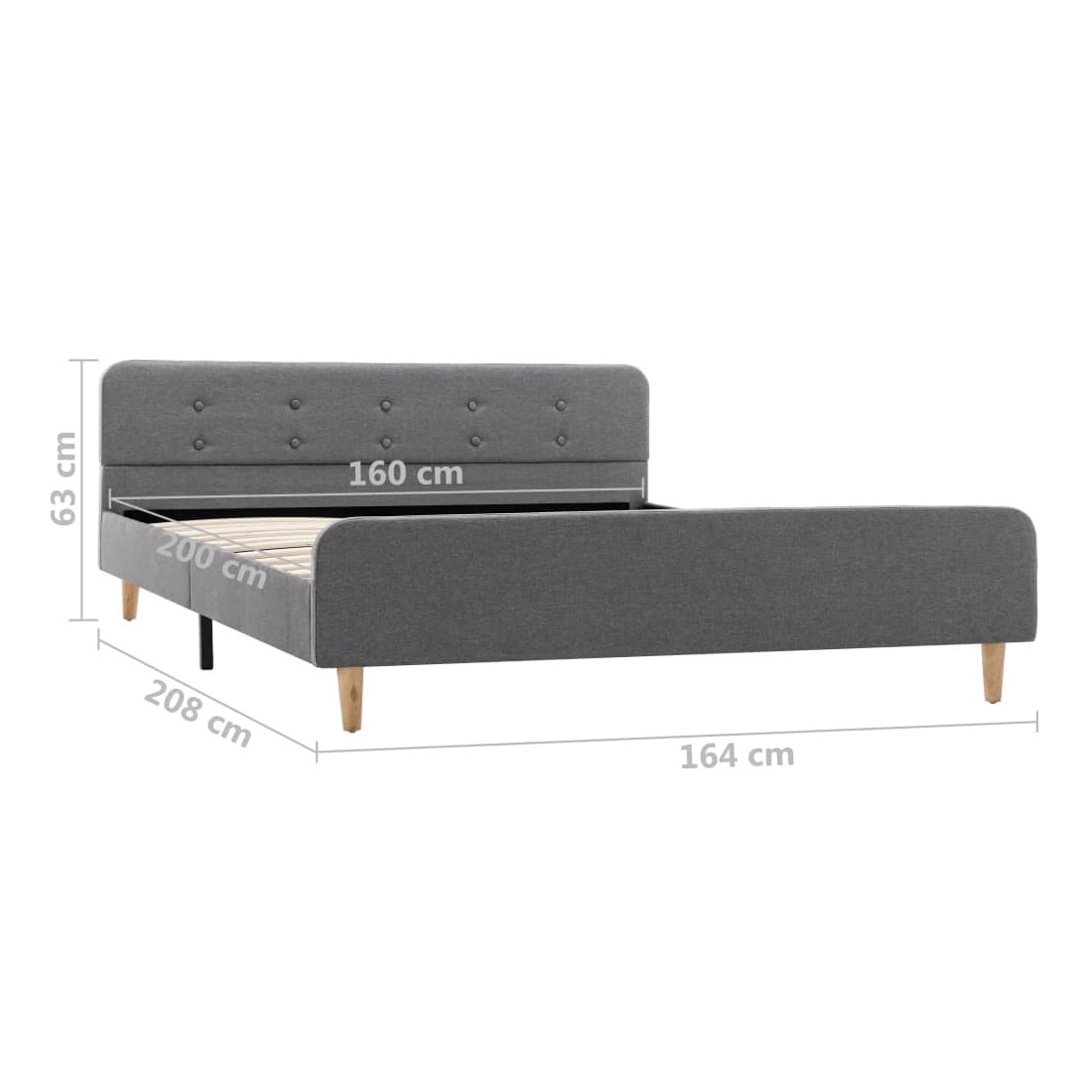 Cadre de lit sans matelas gris clair tissu 160x200 cm