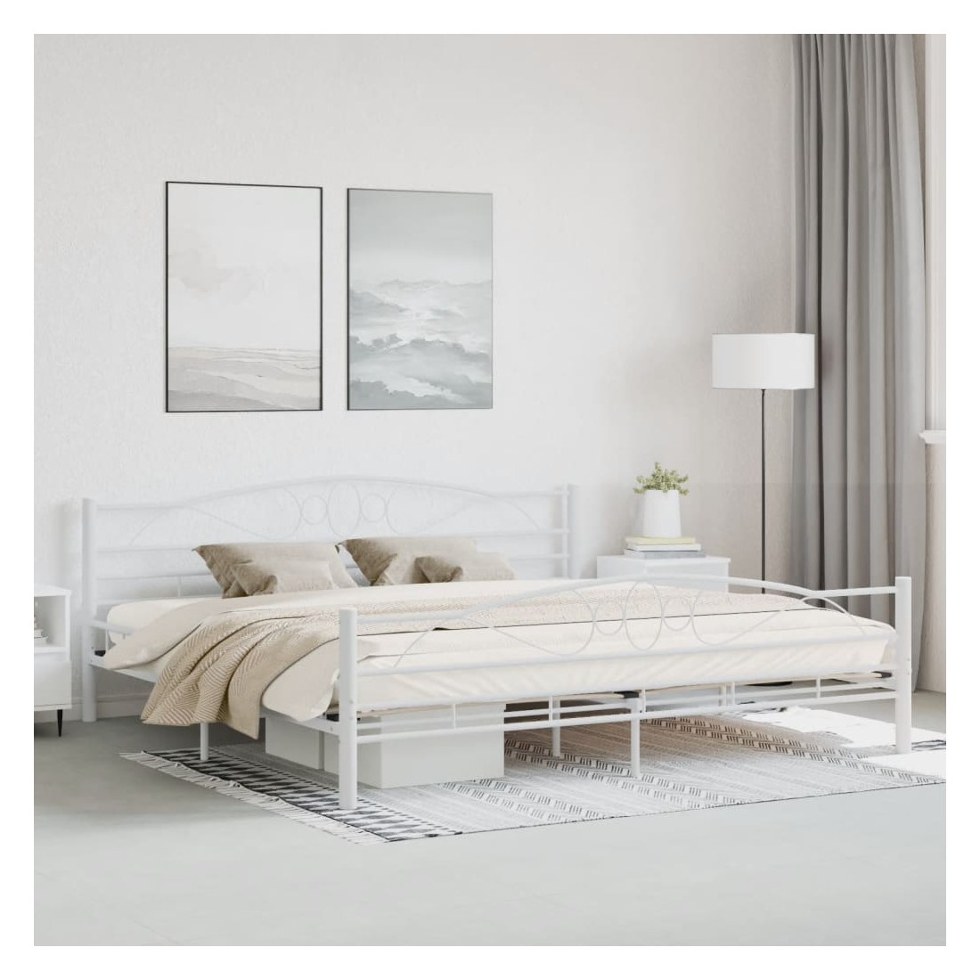 Cadre de lit sans matelas blanc métal 200x200 cm