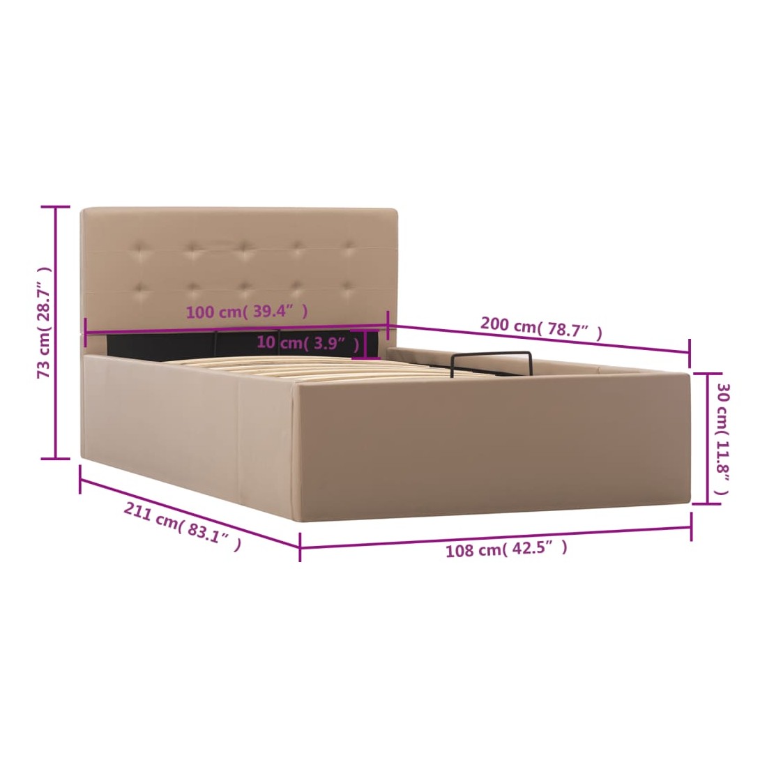 Cadre de lit à stockage Cappuccino Similicuir 100x200cm