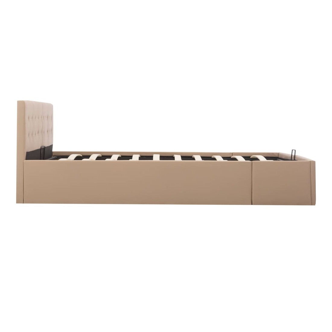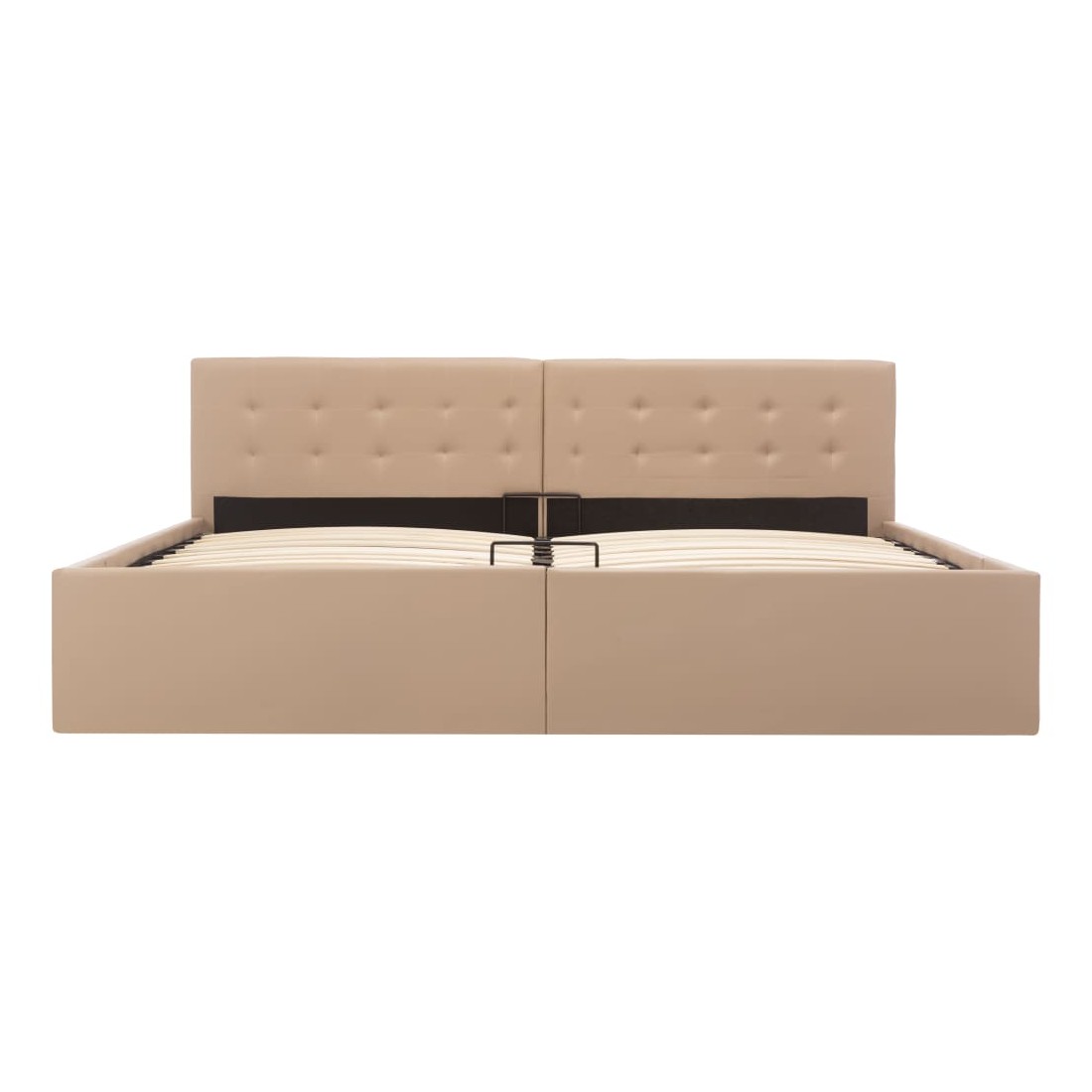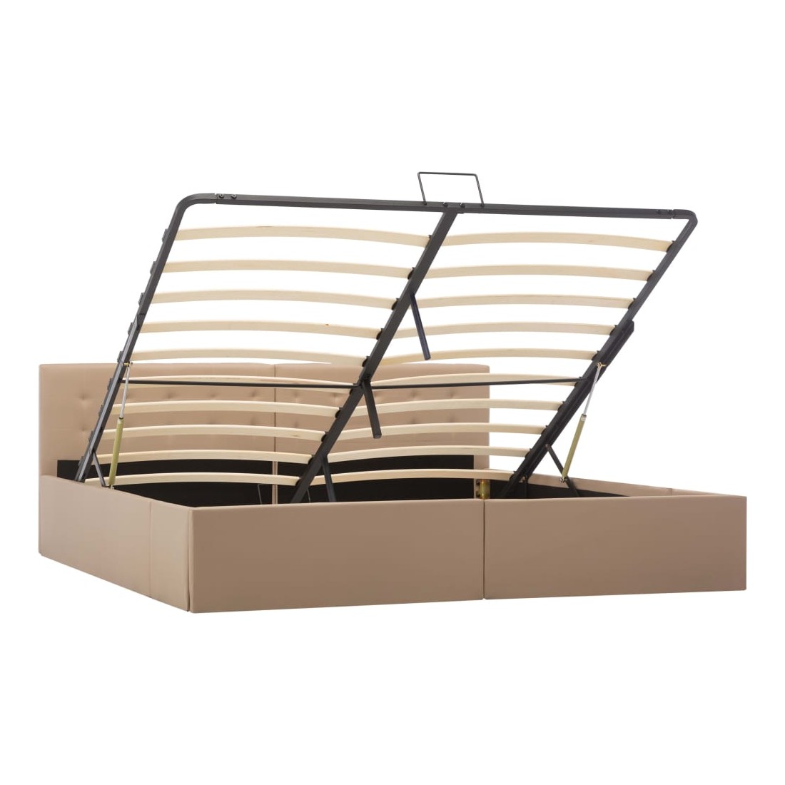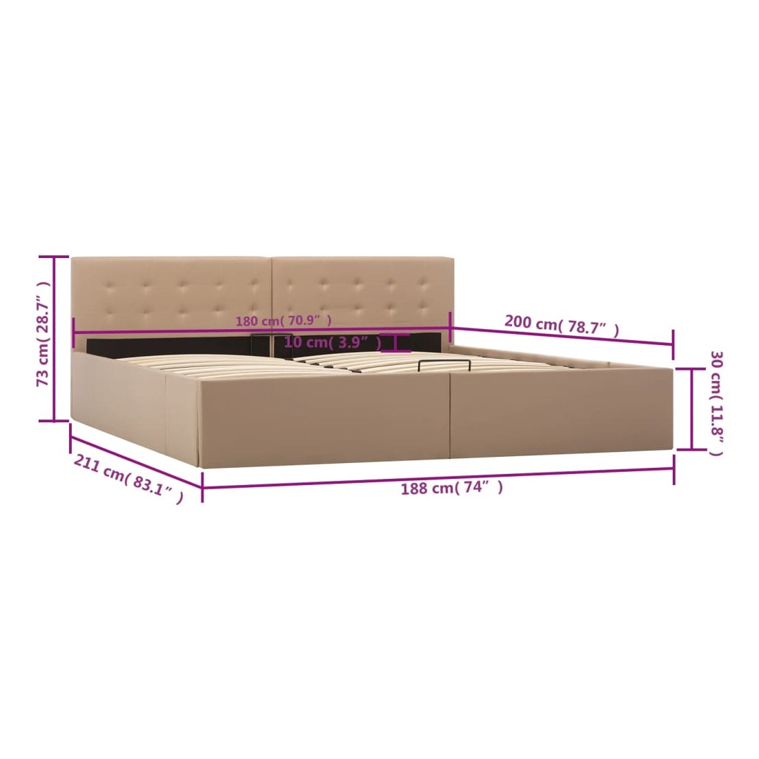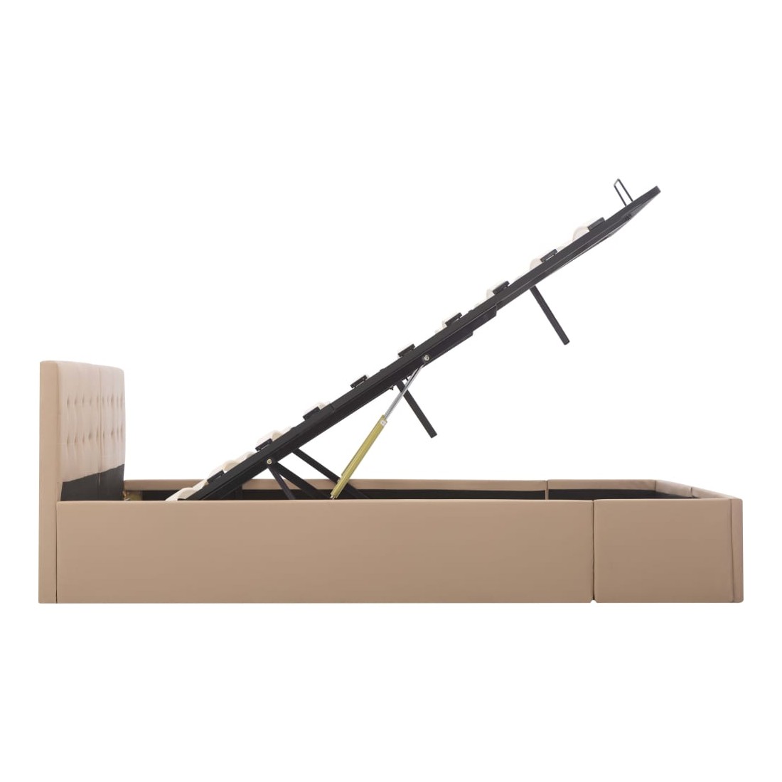 Ajoutez instantanément un goût moderne impressionnant à votre chambre à coucher avec cet élégant cadre de lit ! Longue durée de vie et entretien facile : le similicuir est un matériau très durable qui résiste aux taches, ce qui le rend facile à nettoyer avec un chiffon humide. Sa surface lisse lui confère un aspect élégant qui ressemble à celui du cuir véritable.Matériau robuste : le cadre du lit est doté d'un cadre en acier robuste et de bois d'ingénierie, garantissant robustesse, résistance à la corrosion et durabilité. De plus, sa conception légère garantit une utilisation confortable, même pendant de longues périodes.Fonction de rangement peu encombrante : maximisez l'espace sous le lit pour un rangement caché, idéal pour organiser proprement les vêtements, la literie, etc. Le mécanisme de levage hydraulique à air assure un accès facile.Lattes pour un soutien optimal : le cadre de lit est complété par des lattes pour offrir un soutien et une respirabilité essentiels à votre matelas.Excellent soutien : la tête de lit du sommier vous offre un excellent soutien du dos lorsque vous vous asseyez dans votre lit pour lire ou regarder la télévision. Bon à savoir :Un matelas n'est pas inclus avec ce lit. Nous offrons une sélection variée de matelas. Vous pouvez consulter notre boutique pour trouver un matelas assorti.
