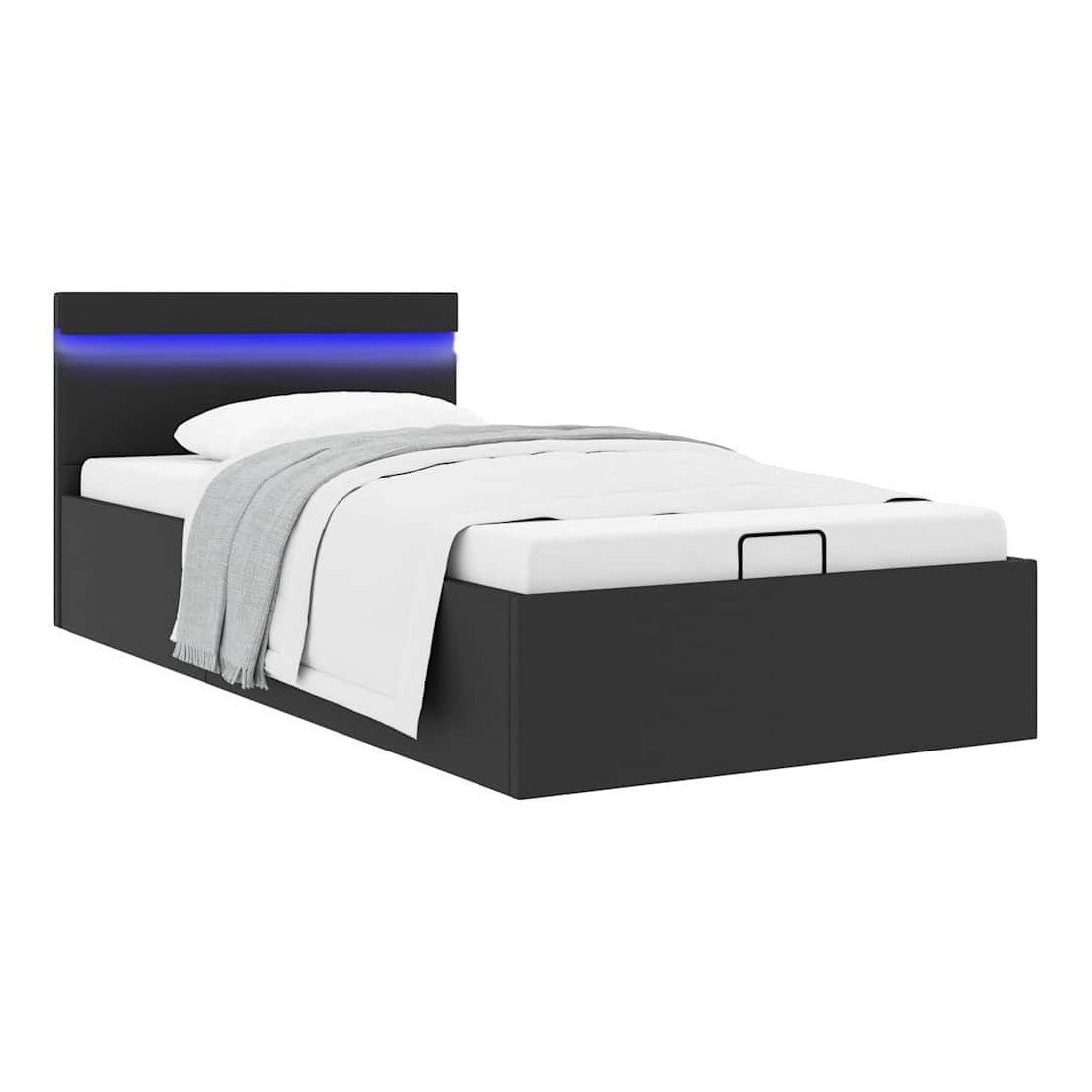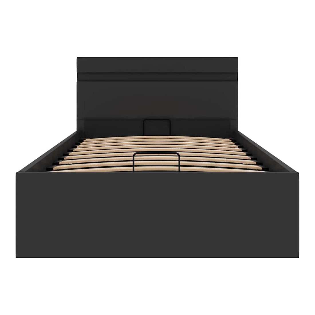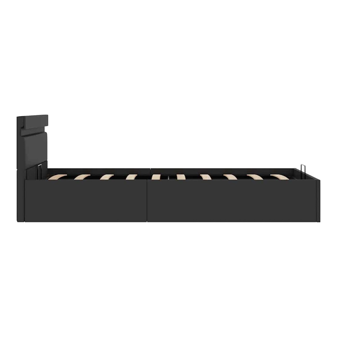 Ajoutez instantanément un goût moderne impressionnant à votre chambre à coucher grâce à notre cadre de lit en similicuir hydraulique ! Ce lit simple se caractérise par un design simple mais élégant, ainsi que par une construction solide, car il est fabriqué en MDF robuste et résistant. Ce lit rembourré transforme l'espace inutilisé sous le matelas en espace de rangement, avec suffisamment d'espace pour ranger les vêtements, les draps, les couvertures, etc. Le mécanisme de levage à gaz hydraulique facilite le soulèvement du matelas. Le sommier à lattes restera droit une fois soulevé pour vous laisser les deux mains libres d'enlever ou de stocker des articles en dessous. Le cadre en acier enduit de poudre et les lattes en contreplaqué ajoutent à la robustesse et à la durabilité du lit. Rembourré de similicuir brillant, ce lit semble accueillant et facile à entretenir. Ce meuble de chambre à coucher convient à un matelas de 90 x 200 cm. Ce lit est équipé de lumières LED qui peuvent être facilement réglées pour créer un spectacle lumineux personnalisé. Vous pouvez personnaliser les modes, les couleurs et la luminosité pour améliorer l'ambiance de votre espace intérieur. Ce produit est facile à assembler. Veuillez noter que la livraison inclut un cadre de lit seulement ; un matelas n'est pas inclus. Vous pouvez chercher le matelas correspondant dans notre boutique. Remarque : ce produit est doté d'un connecteur USB, mais la source d'alimentation certifiée de USB 5V n'est pas incluse.