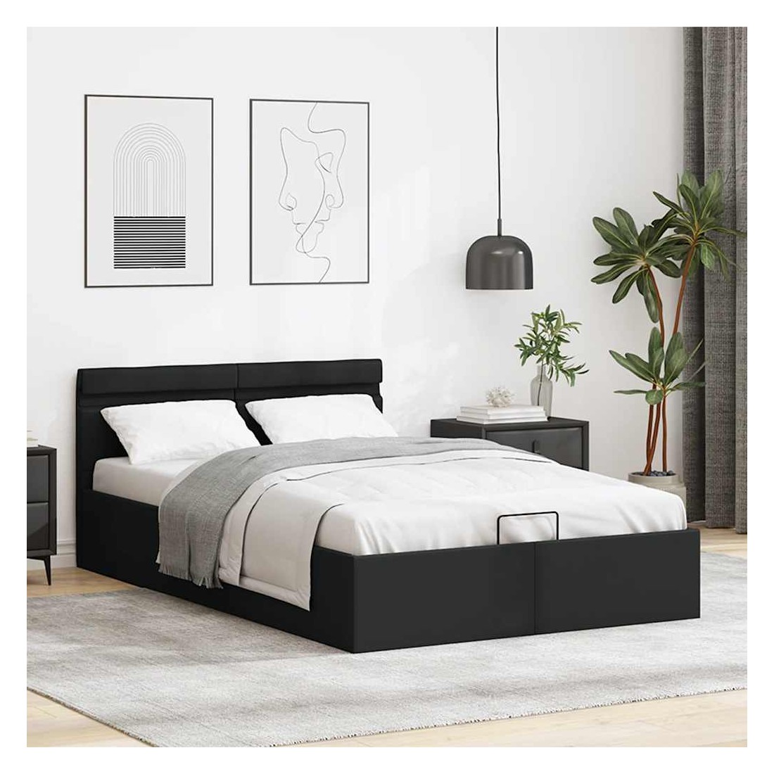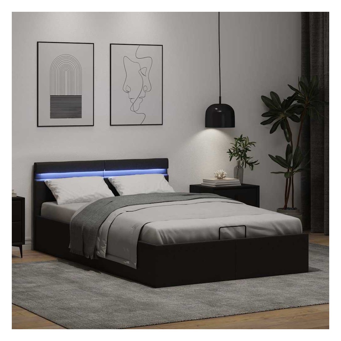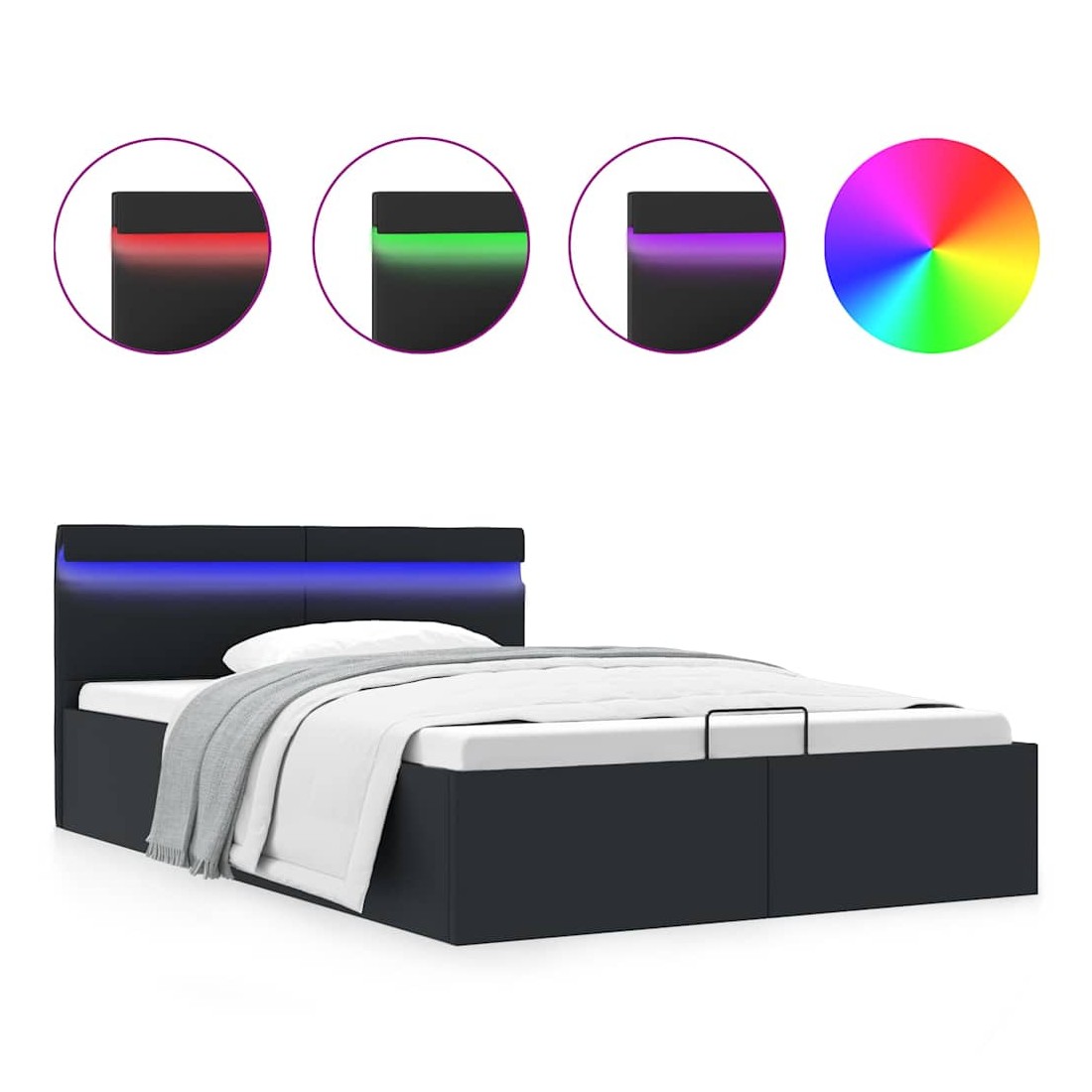 Cadre de lit à rangement hydraulique sans matelas avec LED noir