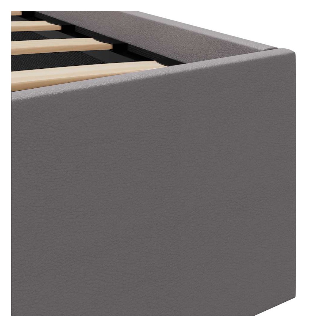 - Matériau : tapisserie en similicuir + lattes en contreplaqué + cadre en acier et MDF