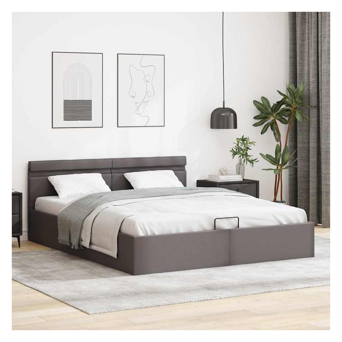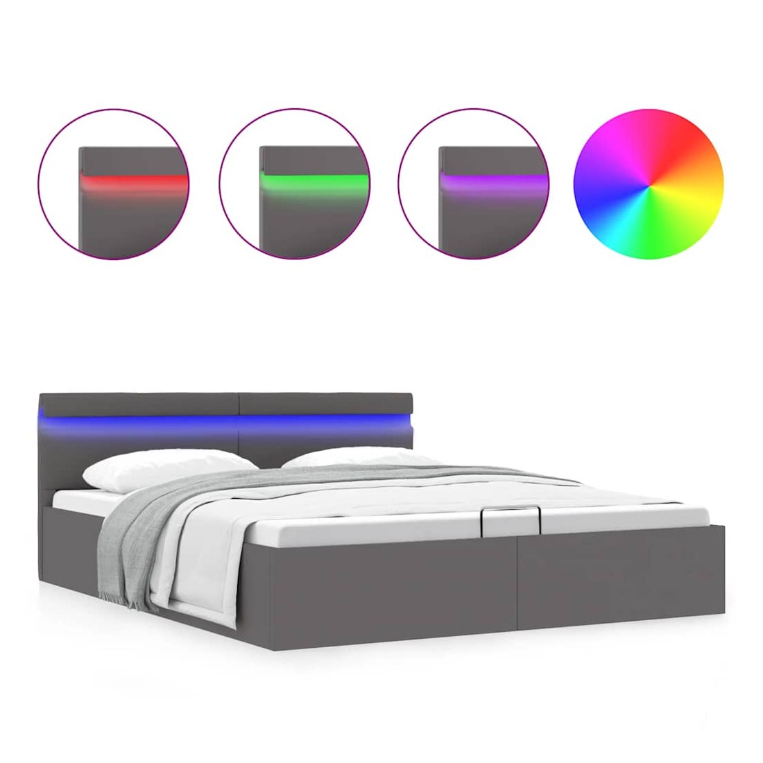 Cadre de lit à rangement avec LED gris similicuir 160x200 cm