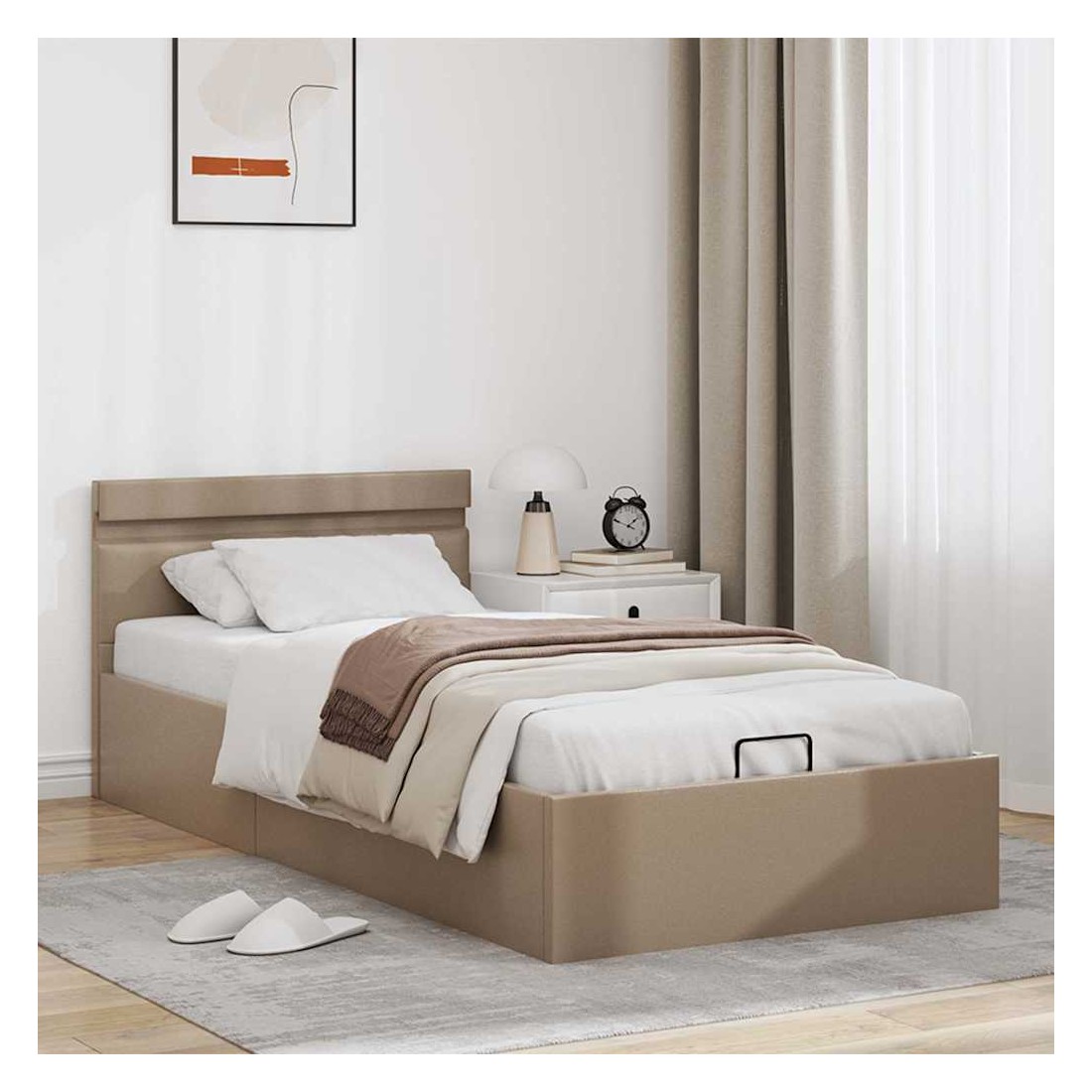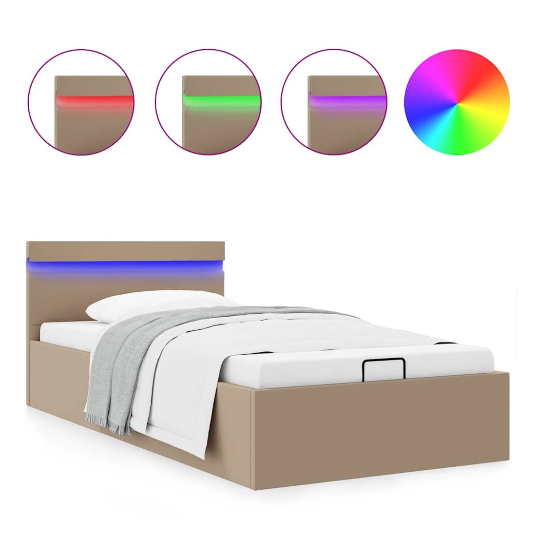 Cadre de lit à rangement et LED Cappuccino Similicuir 100x200cm