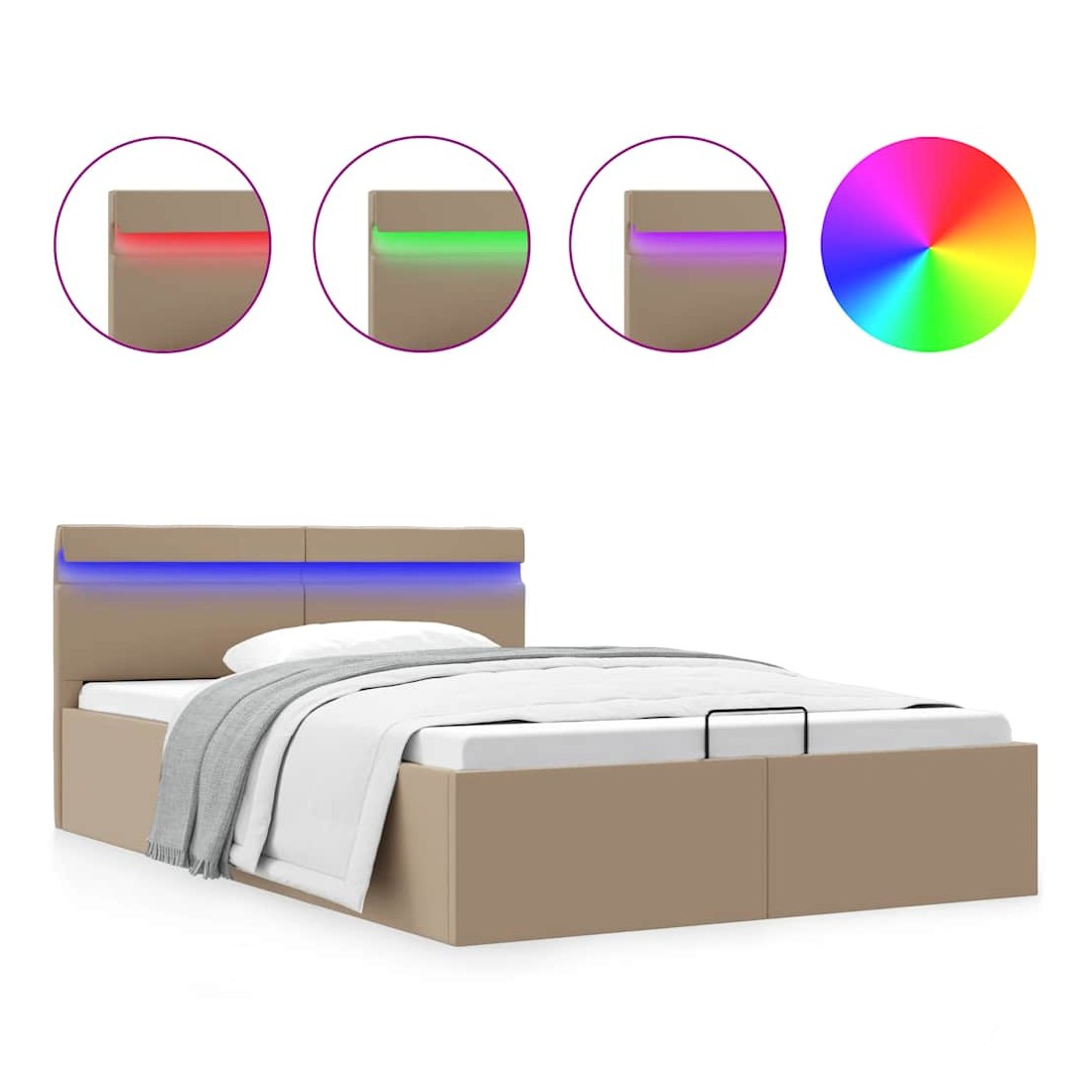 Ajoutez instantanément un goût moderne impressionnant à votre chambre à coucher grâce à notre cadre de lit en similicuir hydraulique ! Ce lit double se caractérise par un design simple mais élégant, ainsi que par une construction solide, car il est fabriqué en MDF robuste et résistant. Ce lit rembourré transforme l'espace inutilisé sous le matelas en espace de rangement, avec suffisamment d'espace pour ranger les vêtements, les draps, les couvertures, etc. Le mécanisme de levage à gaz hydraulique facilite le soulèvement du matelas. Le sommier à lattes restera droit une fois soulevé pour vous laisser les deux mains libres d'enlever ou de stocker des articles en dessous. Le cadre en acier enduit de poudre et les lattes en contreplaqué ajoutent à la robustesse et à la durabilité du lit. Rembourré de similicuir brillant, ce lit semble accueillant et facile à entretenir. Ce meuble de chambre à coucher convient à un matelas de 120 x 200 cm. Ce lit est équipé de lumières LED qui peuvent être facilement réglées pour créer un spectacle lumineux personnalisé. Vous pouvez personnaliser les modes, les couleurs et la luminosité pour améliorer l'ambiance de votre espace intérieur. Ce produit est facile à assembler. Veuillez noter que la livraison inclut un cadre de lit seulement ; un matelas n'est pas inclus. Vous pouvez chercher le matelas correspondant dans notre boutique.